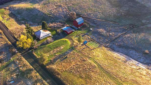 Your Green Bluff Homestead Awaits! Just minutes from Siemers Farm and Beck's Harvest House. Set on nearly 20 acres of fenced, fertile land, this updated farmhouse offers privacy, comfort, and the freedom to live on your terms. The property features a 40+ GPM drilled well and a gravity-fed spring that delivers full-pressure water even when the power is out. During wildfire-related power outages in past years, when electric pumps failed across the area, this spring kept water flowing. It offered peace of mind and real resilience. A wood-burning cookstove adds to the home's self-sufficiency. Enjoy custom Cherry cabinets, a new dishwasher, an upgraded electrical panel, and updated flooring over the original hardwood. Walls were taken to the studs, rebuilt, and re-insulated for year-round comfort. A 528 sq ft garage and 900 sq ft red barn offer room for animals, tools, or creative projects. Seller financing is available: $200k down, 5% interest, and 3-4 year pay-off. Schedule a tour today!