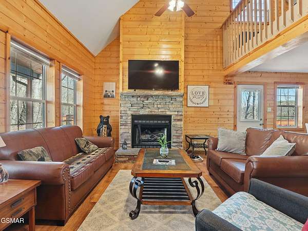 TWO FOR ONE RENTAL OPPORTUNITY- Tucked away on 2.26 wooded acres, this exceptional property features not one, but TWO captivating cabins, perfectly balancing comfort, seclusion, and rental income potential. Ideally located just 5 miles from The Island in Pigeon Forge, 7 miles from Tanger Outlets, and under 20 miles from the Gatlinburg Strip and Ober Gatlinburg, this property offers easy access to all the Smoky Mountains' top attractions. Main Cabin (2001): This 3-bedroom, 2-bathroom (on a two bedroom septic) cabin exudes rustic elegance and modern comfort. The main level features a luxurious primary bedroom with an en-suite bath and jacuzzi tub for ultimate relaxation. An open loft area adds charm, while the upstairs offers two additional bedrooms and another full bath. Soaring cathedral ceilings, vinyl plank flooring, and an electric fireplace create a warm, inviting atmosphere throughout. Step outside to the expansive wraparound porch and immerse yourself in the peaceful surroundings. Second Cabin (1989): This 2-bedroom, 2-bathroom cabin mirrors the main cabin's rustic charm and modern comforts. The spacious master bedroom on the lower level includes a walk-in closet, jacuzzi tub, and access to the wraparound porch. Upstairs, you'll find another bedroom, bath, and a fun loft with a pool table-ideal for family game nights or entertaining guests. The vinyl plank floors, tongue-and-groove walls, and electric fireplace enhance the cozy, inviting atmosphere. Investment Potential: Both homes offer impressive rental projections, with a combined estimate of $85,000 annually, presenting a fantastic opportunity for anyone looking to capitalize on the booming vacation rental market in the area. Priced to Sell: This unique property is a must-see! Whether you're looking for a private getaway or a high-performing vacation rental business, these cabins offer the best of both worlds. Don't miss your chance to own two incredible homes on a single parcel in a prime location!