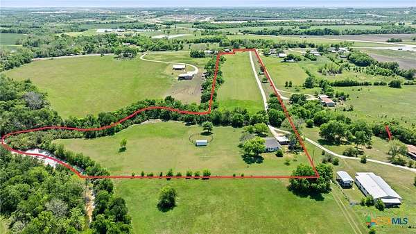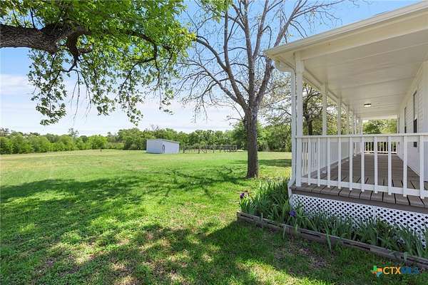 Welcome to your peaceful retreat in the heart of Central Texas. Set on 11 unrestricted, ag-exempt acres, this 3-bedroom, 2-bathroom farmhouse offers 1,712 sq ft of inviting living space with a dedicated office/flex room-perfect for working from home, homeschooling, guest overflow, or even your favorite hobby space. Built in 1996 and updated with a new roof fresh exterior paint in Fall 2024, the home features vaulted ceilings in the living room and abundant windows that flood the whole house with natural light. Spacious kitchen with eat-in dining provides direct access to the outdoors via wrap-around porch. Separate utility room allows for extra storage and quiet management of the household. The en-suite bath off the master provides privacy even when entertaining guests. With tranquil views out of every room - every room of this special farmhouse offers its own little bit of peace and light. The wrap-around porch is ideal for relaxing with a morning coffee or taking in the sunset. Ample storage, updated electrical outlets, and a functional layout add modern comfort to classic charm. Outdoors, enjoy the convenience of a two-car carport, workshop/shed with electricity, a garden shed, and an open barn beside a corral-great for animals or equipment storage. The front pasture is fenced on three sides and both front and side pastures are currently cut for hay, maintaining the Ag exemption. A seasonal creek winds along the tree-lined edge of the property, offering natural beauty, privacy, and potential for livestock or recreational use. There are no deed restrictions, and the automatic gate ensures easy, secure access. Located less than 10 minutes from I-35 and downtown Temple, this property offers rural tranquility without sacrificing convenience. Whether you're dreaming of a small farm, homestead, or just a peaceful place to call home, this versatile property is ready to welcome you.