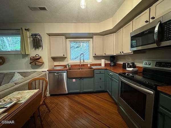 Beautiful 3 bedroom 2 bathroom home situated on Cove Creek with 5 acres of land. This cozy cottage, ''Up the Creek,'' is conveniently located near Wears Valley, Pigeon Forge, Sevierville, Gatlinburg, and the Great Smoky Mountains National Park. It is beautifully furnished for you and your guests to enjoy. The deck and screened-in porch provide an opportunity to relax and take in the stunning scenery and soothing sounds of the stream below. You can also unwind in the hot tub conveniently located on the porch. There are no steep roads to navigate, allowing for easy access to the Parkway. Roads are private roads. This home has been well maintained and cared for by its owners. Features include beautiful doors, wood flooring, and a hammered copper sink in the kitchen, complemented by wood countertops and stainless steel appliances. Whether you choose to invest in it as a rental property, a permanent home, or a vacation retreat, you won't want to miss this opportunity. Create lasting memories in the Smokies!