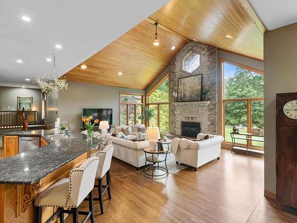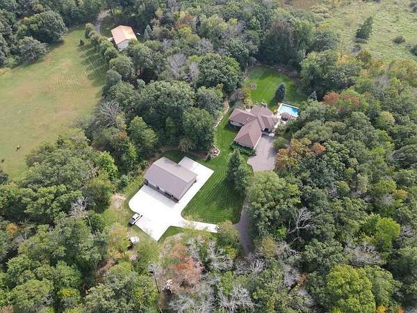 Ten acres of wooded privacy, a saltwater pool, and a 40x60 heated pole building — this Forest Lake estate delivers a lifestyle most only dream about. Deer, turkeys, and songbirds roam freely through the mature trees surrounding this thoughtfully designed modified two-story, making every day feel like a retreat from the world.