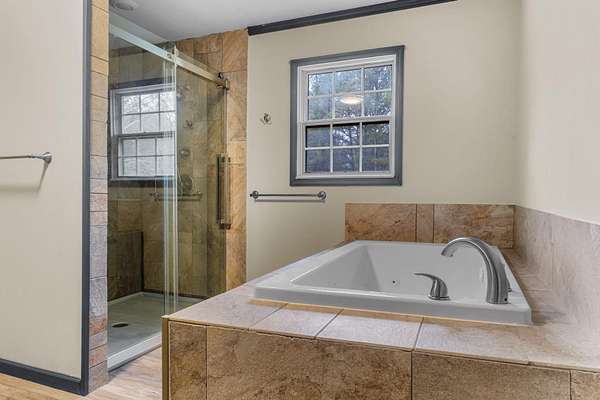 MustSee A charming and spacious home that blends warmth, character, and functionality. This inviting property features two expansive rocking chair front porches (44x8), perfect for relaxing and enjoying the peaceful surroundings. Step inside to a welcoming 10x10 foyer showcasing beautiful heart of pine hardwood floors. The large great room offers plenty of space for gathering and entertaining, with direct access to a side wood deck (10x35) that is ideal for outdoor dining or enjoying nature. Additional main-level living spaces include a sunroom filled with natural light and a dedicated office, perfect for working from home. The kitchen is designed with character and practicality in mind, featuring a large center island, propane cooktop stove, and pine wood cabinetry, providing ample storage and workspace. A half bath with a single vanity sink is conveniently located on the main level. Also on the main floor is a bedroom that can serve as a second primary suite, offering flexibility for guests or multi-generational living. Upstairs, true hardwood stair treads lead you to the private primary suite, complete with a cozy wood-burning stove that adds warmth and charm. The primary bath is a relaxing retreat with dual vanity sinks, a custom tiled shower, and a jetted garden soaker tub. With its inviting porches, thoughtful layout, and rustic elegance, this Hephzibah home offers comfort, character, and versatility that is perfect for those seeking a unique and welcoming place to call home.