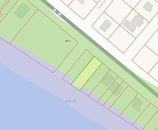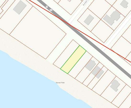 Heading East on Hwy 98, the lot is on the right across from 20th St. It is 100' past the Driftwood Inn. See Sign