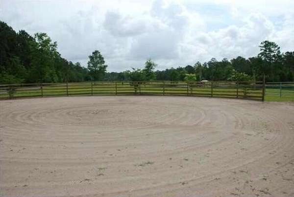 This 20+ acre property has been used as a horse farm for 15+ years. This equestrian center also backs up to the Francis Marion National Forest, with miles and miles of trails. The Francis Marion is home to a variety of wildlife and spans nearly 259,000 acres, and offers a wide variety of recreational opportunities.There are 6 retaining ponds, 5 pastures, 4 private turnouts, 2 run in sheds, 100 ft. round pen with special footing, arena wired for future lighting, 14 stall barn with ceiling fans, hayloft above stalls allows you to view and feed horses. The main house is upstairs, with the primary bedroom and bath and large walk-in closet with great shelving. One bedroom is a suite with full bath and private entrance for trainers, guests, or mother-in-law suite.Beautiful and spacious living with kitchen area open to full screened porch with 2 sliding doors plus french-doors overlooking the entire property which offers spectacular views of the acreage and your horses. Downstairs has a large office, owner's private tack room with brass fixtures, kitchen area, boarder's lounge, full bath plus uncompleted area for handicap bath and large tack area for borders with 8 built-in lockers, opens to large patio area at one end. Two wells each with 250 gallon tank in the event electricity goes out. Instant on demand hot water system. There is a deep water well, septic system. This great horse farm also backs up to the Francis Marion National Forest, with miles and miles of trails. The Francis Marion is home to a variety of wildlife and spans nearly 259,000 acres, and offers a wide variety of recreational opportunities.