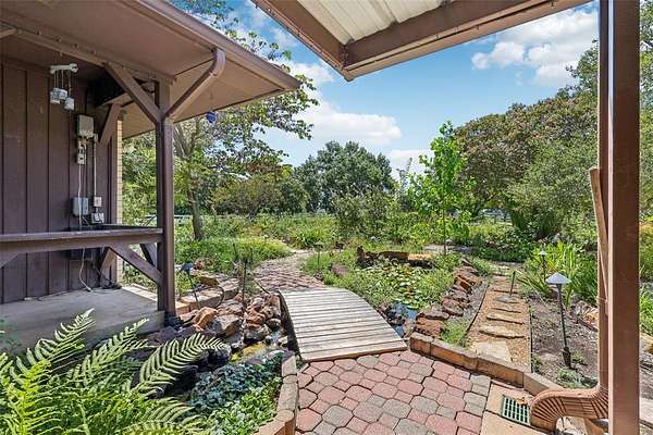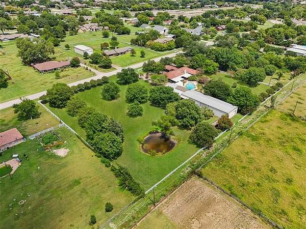 Set on two platted lots totaling about 2.371 acres in Sachse Ranch Estates, this property offers rare land and lifestyle potential. A single story home with guest quarters. The grounds are the showpiece. Elaborate gardens create a Pinterest worthy setting with winding beds, mature trees, a window greenhouse, and two ponds. One is man made and the other is a decorative water feature blended into the gardens. Outdoor living centers around a working clear blue pool and a built in bar that connects to extensive covered patio space for easy entertaining. Multiple improvements add versatility. A two story guest quarters offers flexible living, office, or studio space. An exterior bathroom serves the pool and garden areas. A large shop of approximately 3200 square feet has electric and water for projects, storage, or small business needs. Additional outbuildings include a detached carport and additional workshop space. The second lot is largely open and fenced, giving options for gardens, play, or possibly another residence. Buyers and agents should verify horse restrictions, zoning, and any city or private covenant requirements. Information and measurements is provided as a courtesy only and buyers should independently verify all details that matter to them this is an estate property . This is a rare chance to create a custom residence on acreage with established infrastructure in a convenient Sachse location close to major routes, schools, and amenities.