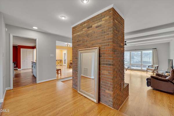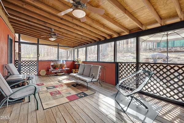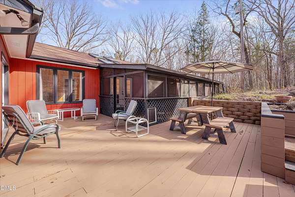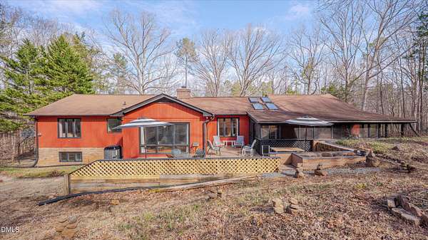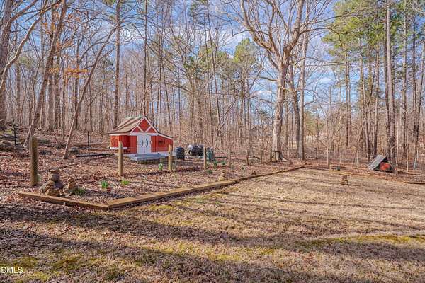 Tucked away in North Durham, this hidden gem offers a peaceful, nature-filled retreat with the benefits of county living, no city taxes, water, or sanitation bills (well and septic). Set on combined 2.27 private acres, 2004 and 2000 Snow Valley Rd, at the end of a quiet cul-de-sac, this well-maintained ranch home is nestled in a hardwood forest and borders a Federal Conservation Easement for added privacy and serenity. Lovingly maintained and spacious, designed for easy one-level living, this sunshine-filled home features 3 bedrooms and 2.5 baths, along with an open floor plan ideal for everyday living and entertaining. The partially finished basement provides versatile bonus space to suit multiple needs. Modern updates include oak hardwood flooring, Star Galaxy granite countertops, Italian kitchen tile, and a Trane HVAC system. Refrigerator, washer and dryer will convey. Home also has a sump pump and dehumidifier with a 3 year warranty. Relax and enjoy the outdoors from the spacious deck and screened porch with ceiling fans, or take advantage of the property's perennial flowerbeds, composters, chicken coops, fig tree, and raised-bed gardens, all fenced within an approximate half-acre area with adaptable configurations perfect for gardening, pets, and play. Additional highlights include two garages with three total parking spaces and no HOA. Conveniently located just 8 miles from Duke and only minutes to the Eno River, Penny's Bend, and hiking paths on the Mountains-to-Sea Trail. This is truly a unique property that blends comfort, functionality, and natural beauty!