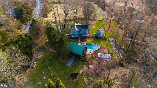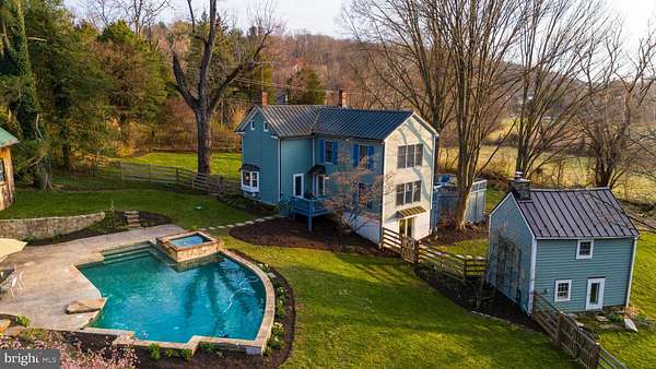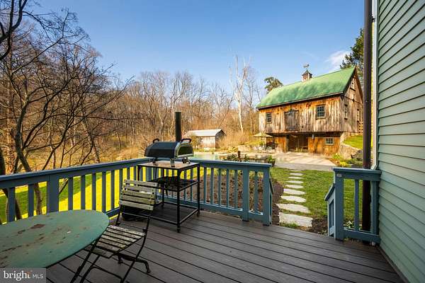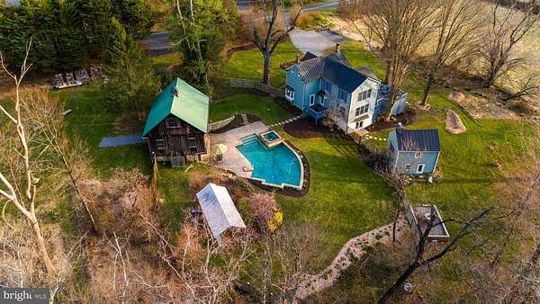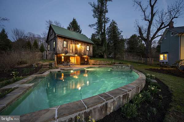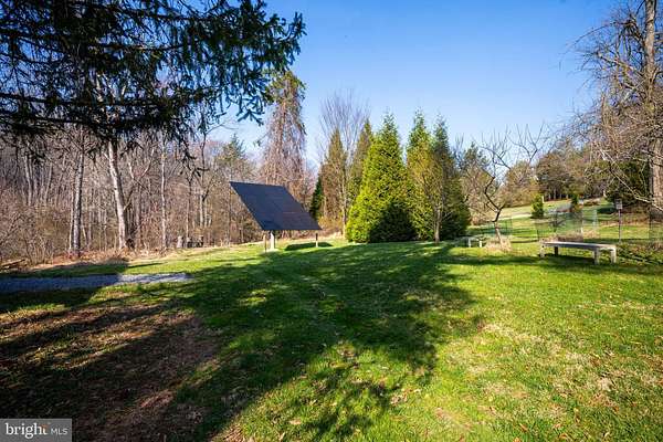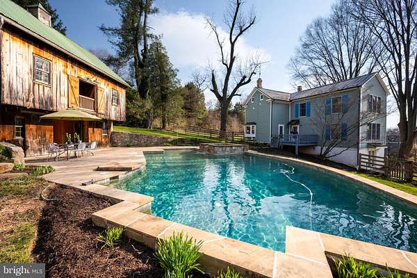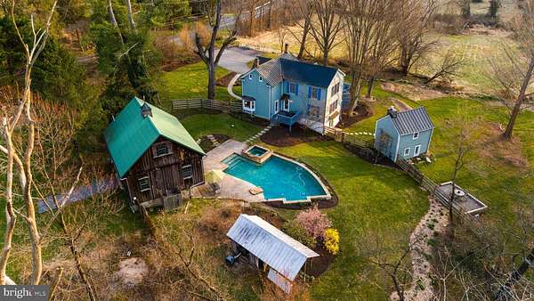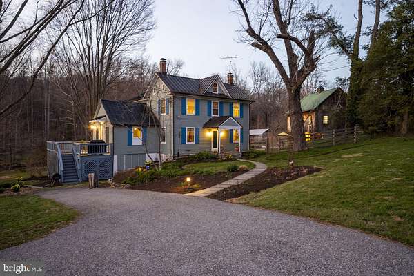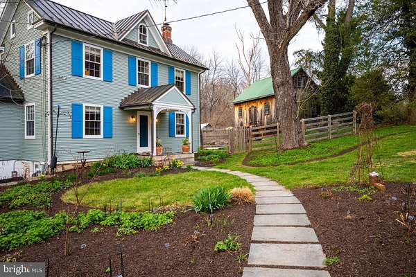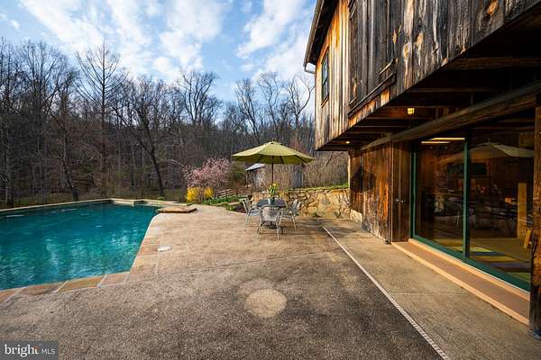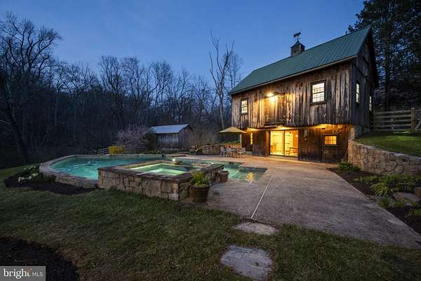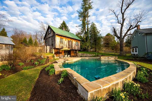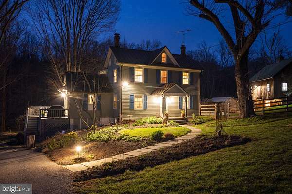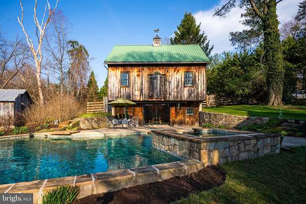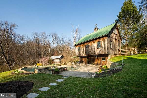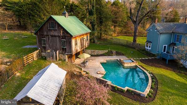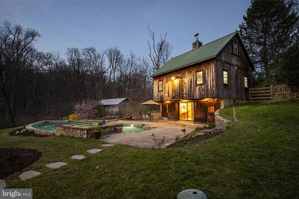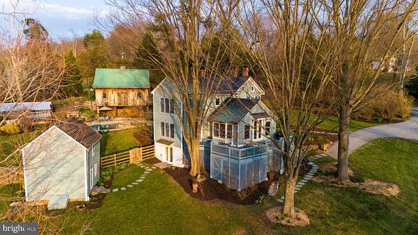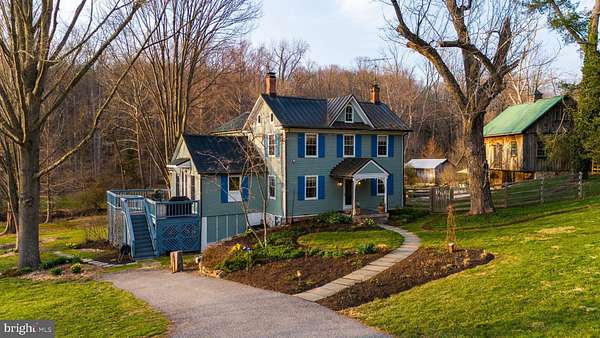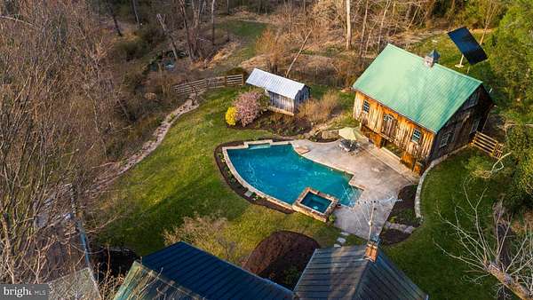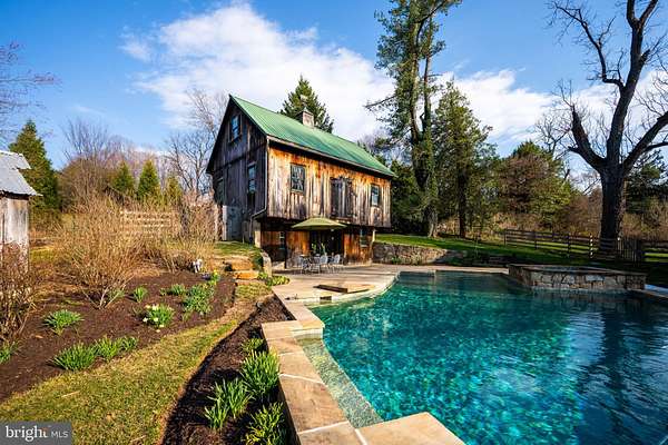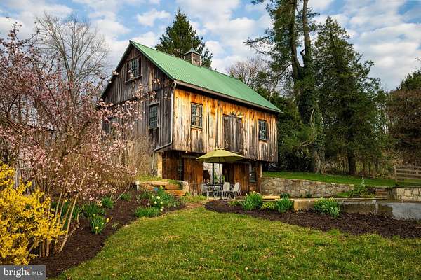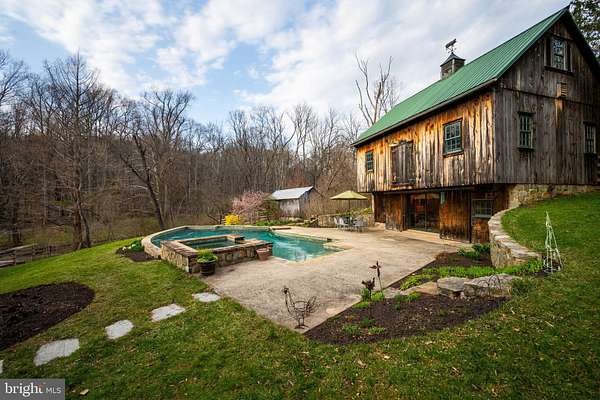 Step into peace on this 3.25-acre verdant refuge, a captivating private oasis nestled in Sparks-Glencoe, an extraordinary property that offers a harmonious blend of rustic elegance and modern sustainability: a charming main home with three bedrooms, three full & one half baths, a barn and a completely restored log cabin dating back 230 years. Surrounded by arboretum quality trees, the creek & spring pond all attract native birds, pollinators, and wildlife. Spend peaceful sunny mornings sipping a latte on your kitchen deck, afternoons poolside or in the fenced-in back yard with hawks and eagles flying overhead, and evenings next to the wood burning stove while reading a book. Step into warmth the moment you enter the main house. The charming entryway, which doubles as a sitting room, is anchored by a vibrant red Vermont Castings wood-burning stove nestled in a timeless exposed brick chimney, perfect for cozy evenings and snowy mornings. A home office is found just off the entryway complete with a half bath, providing the possibility for an additional bedroom or other flexible space. The living & dining area features a striking exposed-beam ceiling showcasing rich wood beams and planks, infusing the space with cozy cabin-inspired warmth and abundant character. A custom-made Artemide pendant lamp designed by Michele de Lucchi is featured in the dining area. A standout kitchen has been designed for function and style, highlighted by rich wood cabinets that bring natural warmth and texture to the space. Centered on a generous island with sleek charcoal soapstone countertop and seating, it's equipped with modern stainless appliances, pendant lighting, and smart storage solutions like glass doors and deep drawers. The neutral backsplash and abundant natural light make it bright and inviting, seamlessly connecting to the beamed living areas for cohesive rustic charm throughout the home. Upstairs, the luxurious primary suite offers a serene, light-filled retreat with soaring vaulted ceilings accented by exposed rustic wooden beams, creating an airy yet cozy cabin-like ambiance. Large windows flood the space with natural light and frame peaceful wooded views, and a walk-in cedar closet and built-in drawers provide ample storage space. The adjoining spa-like primary bathroom is a true highlight, featuring elegant marble tile throughout, a deep soaking tub with a marble surround, a separate walk-in shower, dual vanities topped in rich granite, and crisp white cabinetry, delivering a bright, sophisticated sanctuary perfect for relaxation and rejuvenation. Two additional bedrooms and a full bath provide more space on the upper level for family, guests, or any space to suit your lifestyle. A garden area with soil ready for planting your vegetable, herb, and flower garden awaits you, while the high tunnel structure extends the planting season in both spring and fall. A small fruit orchard with pears, peaches, plums, and nectarine provide ample harvests for creating jams, tarts, and summer salads. An additional fenced-in area can be used for playing ball with a dog or other activities. The barn upstairs is large, light filled, and ready for all your outdoor storage needs and building projects. The downstairs is a finished-out party space, complete with radiant floor heating, a kitchenette, a bathroom, and a dry sauna. The large sliding glass doors open to a view over the saltwater swimming pool and beyond towards the neighboring fields and forests. Solar panels, Tesla Powerwalls, and a geothermal system create a comfortable living environment inside all the structures. The log cabin behind the main house, built in 1798, provides a sanctuary for yoga, listening to music, meditation, seed saving, herb drying, and more. Nestled in the highly coveted Hereford Zone of Northern Baltimore County, this exceptional 3.25-acre retreat feels like a peaceful world of its own.