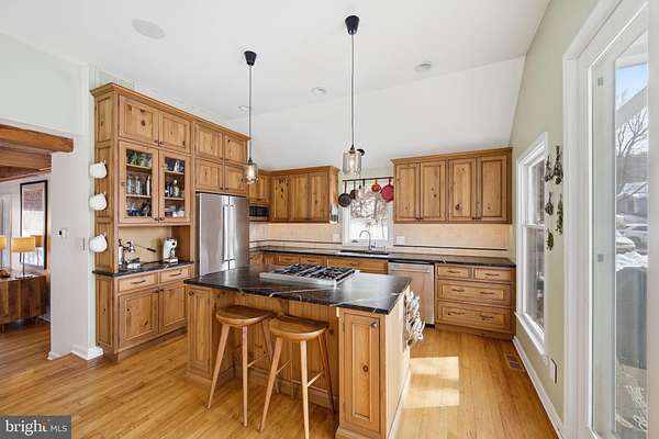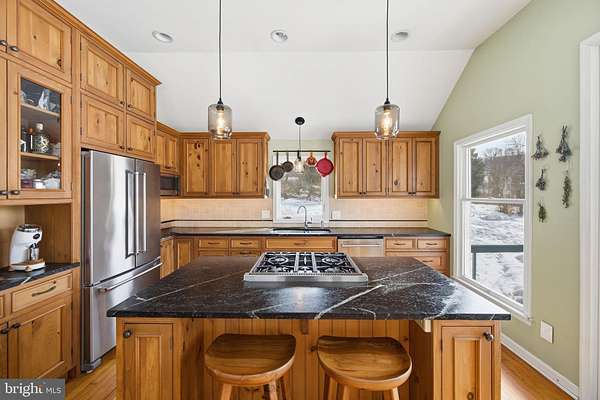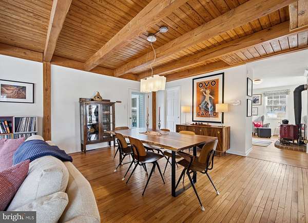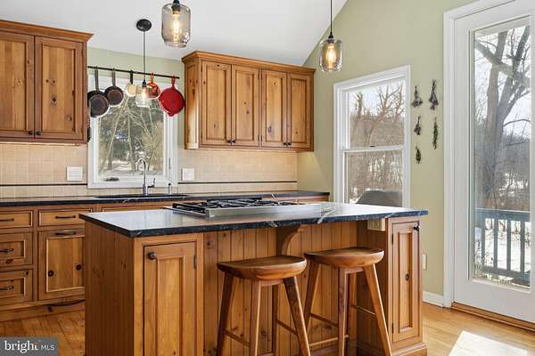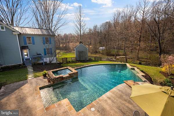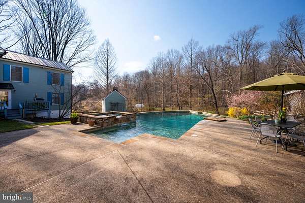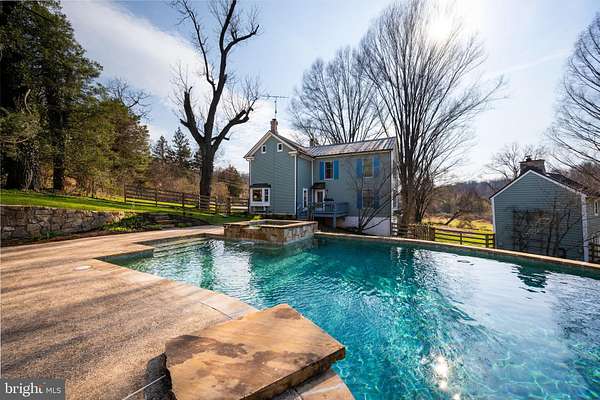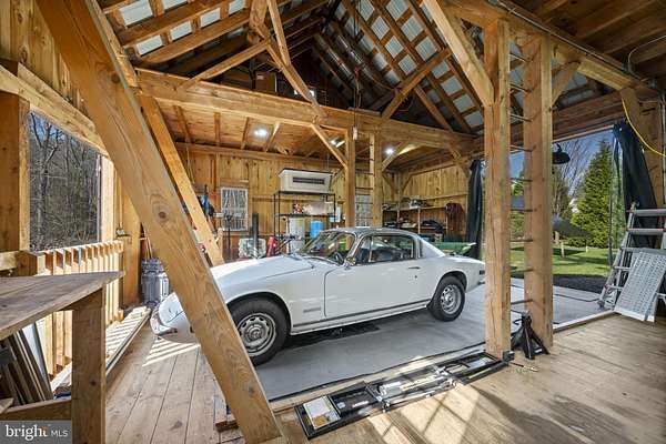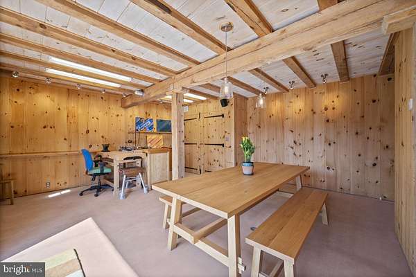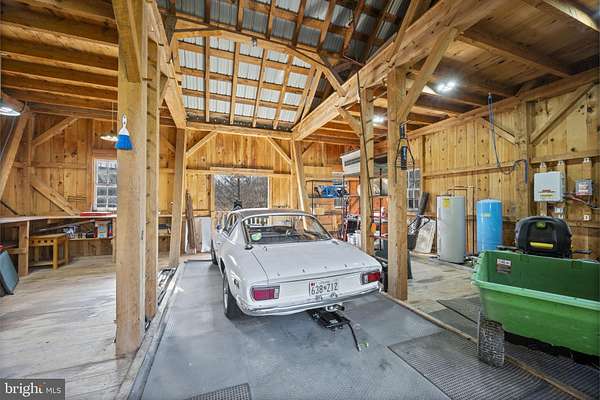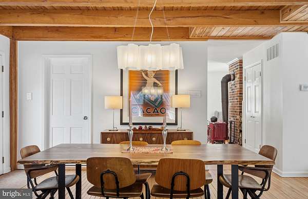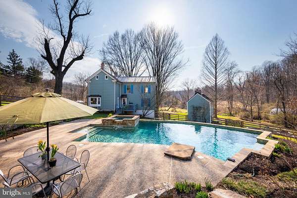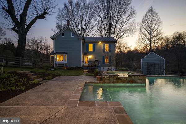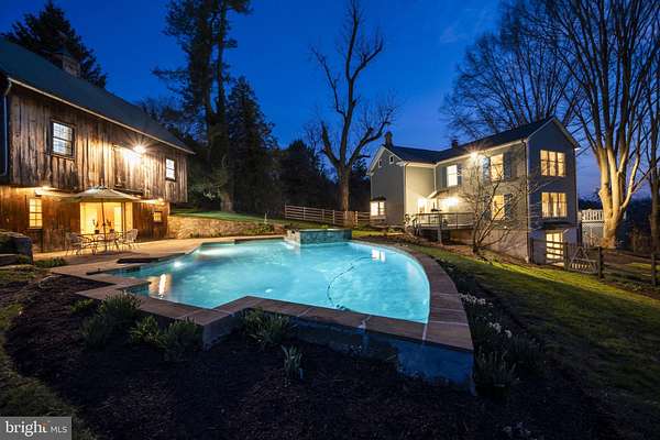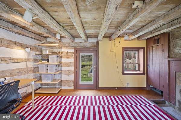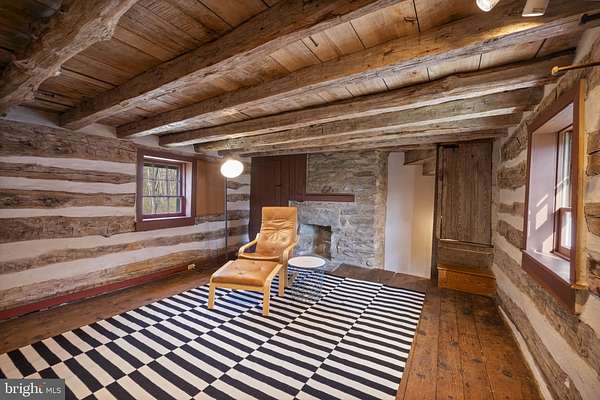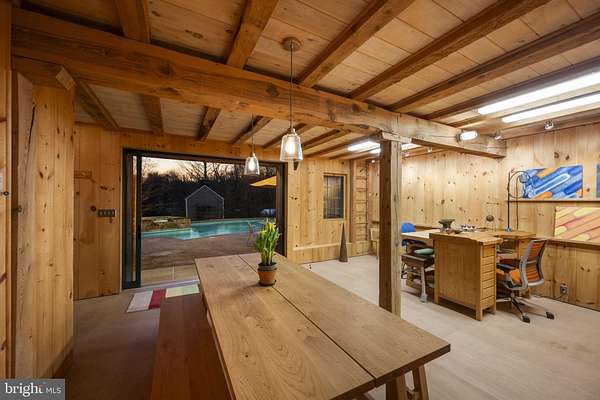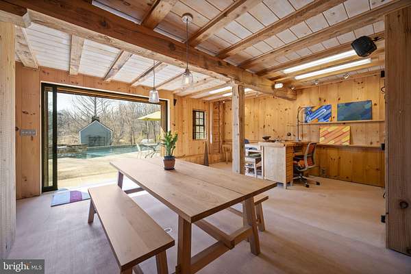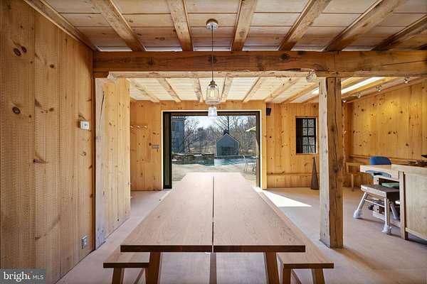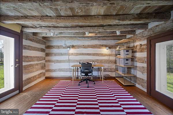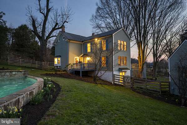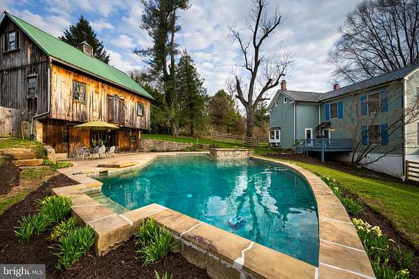 Step into peace on this 3.25-acre verdant refuge, a captivating private oasis nestled in Sparks-Glencoe, an extraordinary property that offers a harmonious blend of rustic elegance and modern sustainability: a charming main home with three bedrooms, three full & one half baths, a barn and a completely restored log cabin dating back 230 years. Surrounded by arboretum quality trees, the creek & spring pond all attract native birds, pollinators, and wildlife. Spend peaceful sunny mornings sipping a latte on your kitchen deck, afternoons poolside or in the fenced-in back yard with hawks and eagles flying overhead, and evenings next to the wood burning stove while reading a book. Step into warmth the moment you enter the main house. The charming entryway, which doubles as a sitting room, is anchored by a vibrant red Vermont Castings wood-burning stove nestled in a timeless exposed brick chimney, perfect for cozy evenings and snowy mornings. A home office is found just off the entryway complete with a half bath, providing the possibility for an additional bedroom or other flexible space. The living & dining area features a striking exposed-beam ceiling showcasing rich wood beams and planks, infusing the space with cozy cabin-inspired warmth and abundant character. A custom-made Artemide pendant lamp designed by Michele de Lucchi is featured in the dining area. A standout kitchen has been designed for function and style, highlighted by rich wood cabinets that bring natural warmth and texture to the space. Centered on a generous island with sleek charcoal soapstone countertop and seating, it's equipped with modern stainless appliances, pendant lighting, and smart storage solutions like glass doors and deep drawers. The neutral backsplash and abundant natural light make it bright and inviting, seamlessly connecting to the beamed living areas for cohesive rustic charm throughout the home. Upstairs, the luxurious primary suite offers a serene, light-filled retreat with soaring vaulted ceilings accented by exposed rustic wooden beams, creating an airy yet cozy cabin-like ambiance. Large windows flood the space with natural light and frame peaceful wooded views, and a walk-in cedar closet and built-in drawers provide ample storage space. The adjoining spa-like primary bathroom is a true highlight, featuring elegant marble tile throughout, a deep soaking tub with a marble surround, a separate walk-in shower, dual vanities topped in rich granite, and crisp white cabinetry, delivering a bright, sophisticated sanctuary perfect for relaxation and rejuvenation. Two additional bedrooms and a full bath provide more space on the upper level for family, guests, or any space to suit your lifestyle. A garden area with soil ready for planting your vegetable, herb, and flower garden awaits you, while the high tunnel structure extends the planting season in both spring and fall. A small fruit orchard with pears, peaches, plums, and nectarine provide ample harvests for creating jams, tarts, and summer salads. An additional fenced-in area can be used for playing ball with a dog or other activities. The barn upstairs is large, light filled, and ready for all your outdoor storage needs and building projects. The downstairs is a finished-out party space, complete with radiant floor heating, a kitchenette, a bathroom, and a dry sauna. The large sliding glass doors open to a view over the saltwater swimming pool and beyond towards the neighboring fields and forests. Solar panels, Tesla Powerwalls, and a geothermal system create a comfortable living environment inside all the structures. The log cabin behind the main house, built in 1798, provides a sanctuary for yoga, listening to music, meditation, seed saving, herb drying, and more. Nestled in the highly coveted Hereford Zone of Northern Baltimore County, this exceptional 3.25-acre retreat feels like a peaceful world of its own.