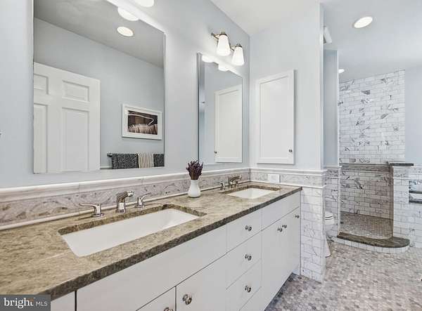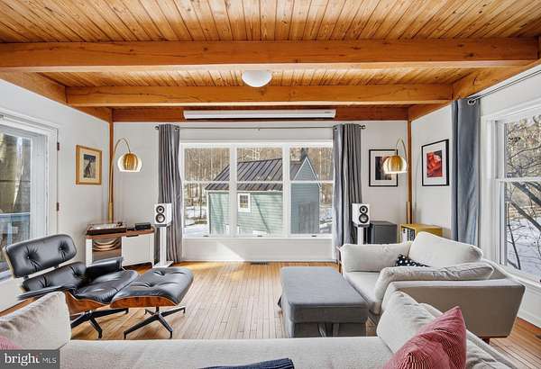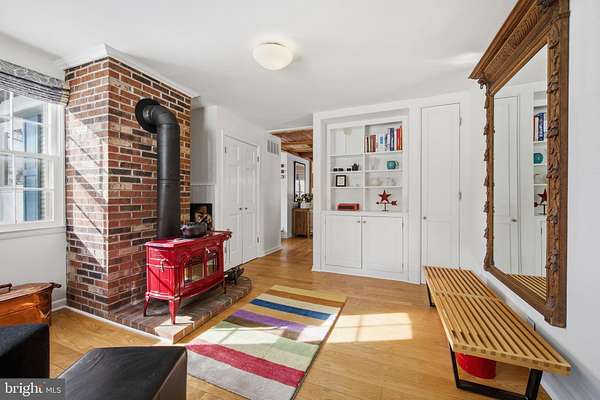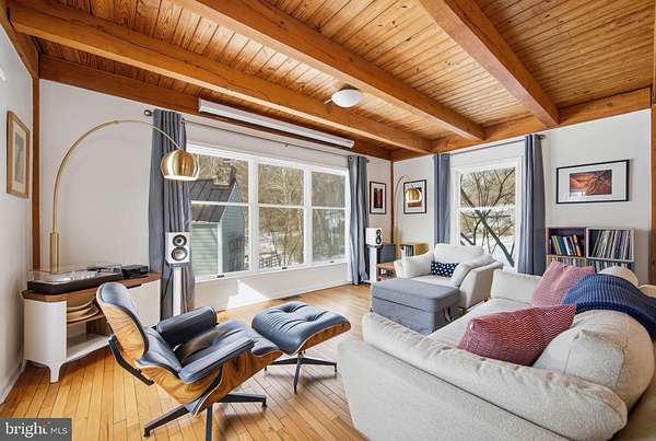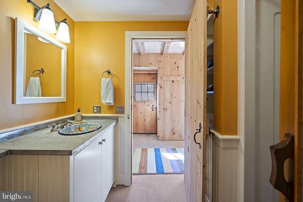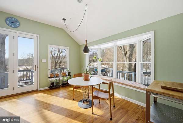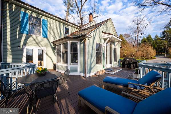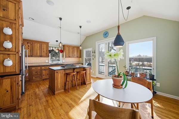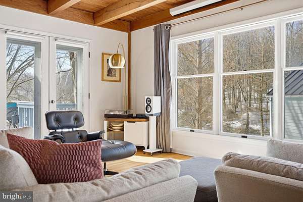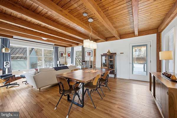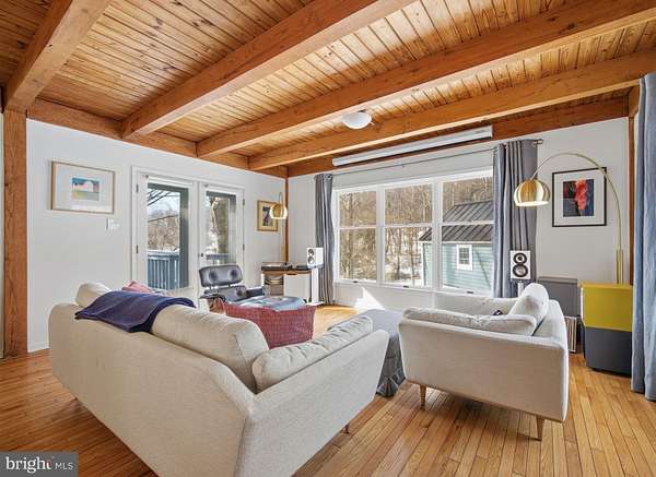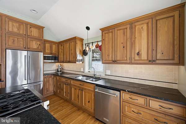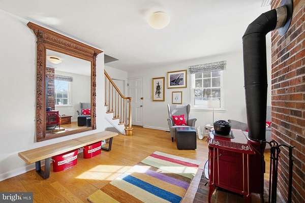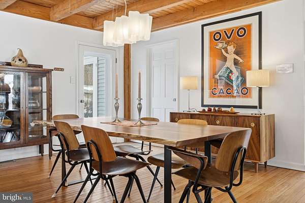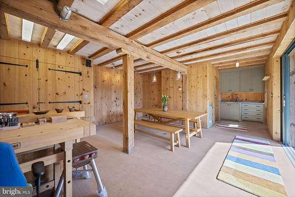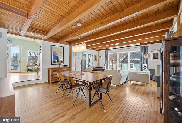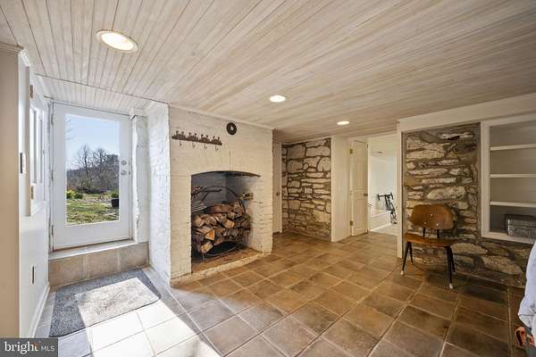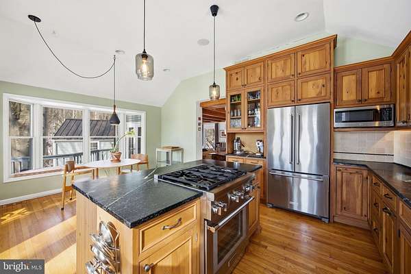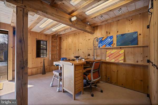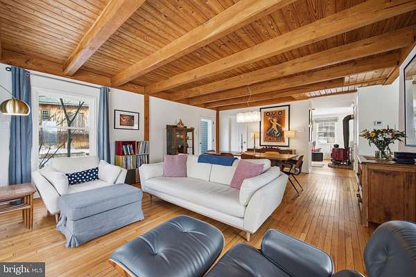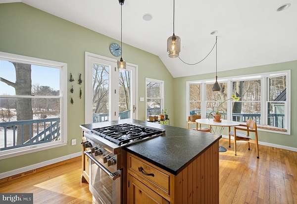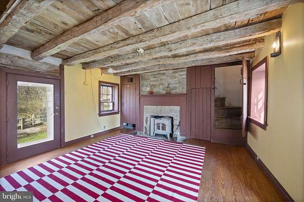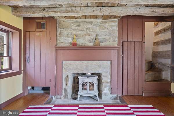 Step into peace on this 3.25-acre verdant refuge, a captivating private oasis nestled in Sparks-Glencoe, an extraordinary property that offers a harmonious blend of rustic elegance and modern sustainability: a charming main home with three bedrooms, three full & one half baths, a barn and a completely restored log cabin dating back 230 years. Surrounded by arboretum quality trees, the creek & spring pond all attract native birds, pollinators, and wildlife. Spend peaceful sunny mornings sipping a latte on your kitchen deck, afternoons poolside or in the fenced-in back yard with hawks and eagles flying overhead, and evenings next to the wood burning stove while reading a book. Step into warmth the moment you enter the main house. The charming entryway, which doubles as a sitting room, is anchored by a vibrant red Vermont Castings wood-burning stove nestled in a timeless exposed brick chimney, perfect for cozy evenings and snowy mornings. A home office is found just off the entryway complete with a half bath, providing the possibility for an additional bedroom or other flexible space. The living & dining area features a striking exposed-beam ceiling showcasing rich wood beams and planks, infusing the space with cozy cabin-inspired warmth and abundant character. A custom-made Artemide pendant lamp designed by Michele de Lucchi is featured in the dining area. A standout kitchen has been designed for function and style, highlighted by rich wood cabinets that bring natural warmth and texture to the space. Centered on a generous island with sleek charcoal soapstone countertop and seating, it's equipped with modern stainless appliances, pendant lighting, and smart storage solutions like glass doors and deep drawers. The neutral backsplash and abundant natural light make it bright and inviting, seamlessly connecting to the beamed living areas for cohesive rustic charm throughout the home. Upstairs, the luxurious primary suite offers a serene, light-filled retreat with soaring vaulted ceilings accented by exposed rustic wooden beams, creating an airy yet cozy cabin-like ambiance. Large windows flood the space with natural light and frame peaceful wooded views, and a walk-in cedar closet and built-in drawers provide ample storage space. The adjoining spa-like primary bathroom is a true highlight, featuring elegant marble tile throughout, a deep soaking tub with a marble surround, a separate walk-in shower, dual vanities topped in rich granite, and crisp white cabinetry, delivering a bright, sophisticated sanctuary perfect for relaxation and rejuvenation. Two additional bedrooms and a full bath provide more space on the upper level for family, guests, or any space to suit your lifestyle. A garden area with soil ready for planting your vegetable, herb, and flower garden awaits you, while the high tunnel structure extends the planting season in both spring and fall. A small fruit orchard with pears, peaches, plums, and nectarine provide ample harvests for creating jams, tarts, and summer salads. An additional fenced-in area can be used for playing ball with a dog or other activities. The barn upstairs is large, light filled, and ready for all your outdoor storage needs and building projects. The downstairs is a finished-out party space, complete with radiant floor heating, a kitchenette, a bathroom, and a dry sauna. The large sliding glass doors open to a view over the saltwater swimming pool and beyond towards the neighboring fields and forests. Solar panels, Tesla Powerwalls, and a geothermal system create a comfortable living environment inside all the structures. The log cabin behind the main house, built in 1798, provides a sanctuary for yoga, listening to music, meditation, seed saving, herb drying, and more. Nestled in the highly coveted Hereford Zone of Northern Baltimore County, this exceptional 3.25-acre retreat feels like a peaceful world of its own.