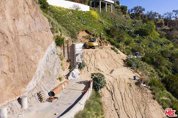 This exceptional offering is the sister property to 2034 Sunset Plaza, positioned directly next door and designed with the same world-class vision. Encompassing approximately 11,000 square feet and soon to be listed at $25 million, the site offers buyers a rare chance to preview its nearly completed counterpart at 2034 Sunset Plaza to fully understand the scale, design, and end result this property will deliver. What makes this opportunity especially valuable is that extensive foundation and preparatory work has already been executed (by DJ Sheffler - one of the top foundation contractors in the industry) - significantly de-risking the project for a future buyer. Ground has been broken, property has been cleared of debris, rough-graded, and improved with temporary access roads to ensure safe movement of heavy equipment. Staging areas and solid work platforms were established to support the machinery required for installing the deep foundations - including 34 piles per drilling shafts aprx 80' deep - handling and relocating spoils, fabricating and placing rebar, and setting concrete, along with multiple crane and pump configurations used throughout construction. Temporary lagging has also been installed to secure access points and safely lower the grade level of the site, ensuring the project can resume seamlessly. The entire hillside has been fully shotcreted with extensive soil nailing, and the major slope cuts are already complete. The site features an additional lower entrance, an unusually large flat motor court that can accommodate up to eight cars - a rarity in the Hollywood Hills, plus a secondary motor court at the top. The property also captures a stronger view corridor than its sister home currently nearing completion, offering elevated sightlines and exceptional privacy. A truly rare, advanced-stage development opportunity with RTI plans by notable IR Architects in one of the most coveted view corridors in Los Angeles