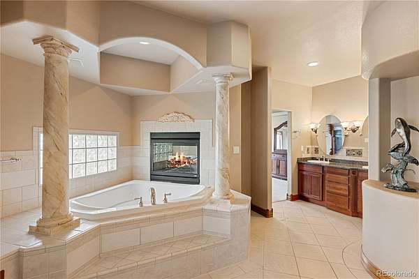 The primary suite is a true retreat with private outdoor access and a double sided fireplace connecting the bedroom and spa like bath, featuring a jetted tub and steam shower. Upstairs offers two additional bedrooms, while the finished basement is ideal for entertaining or multi generational living with a wet bar, theater room, sauna, additional bedrooms, and a second laundry hookup.