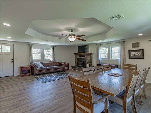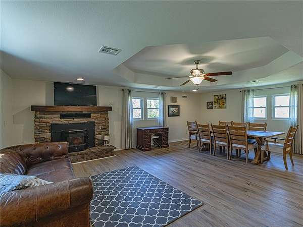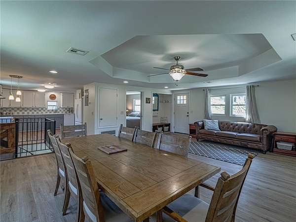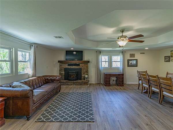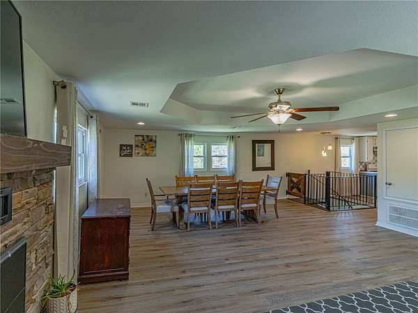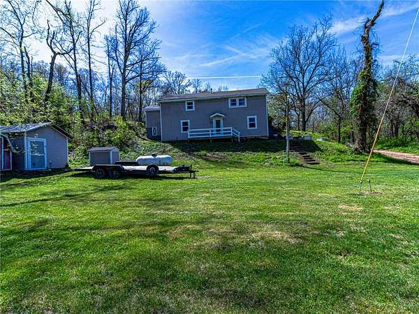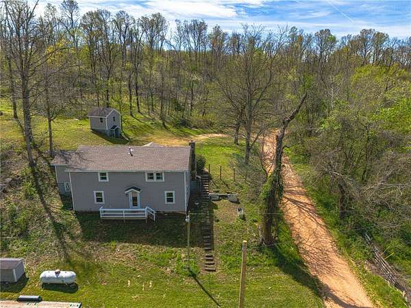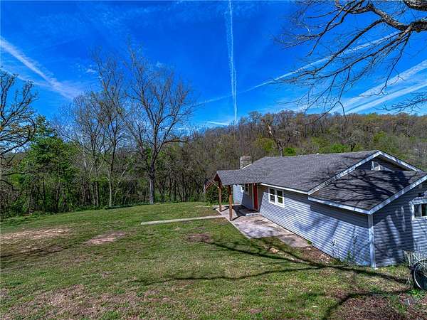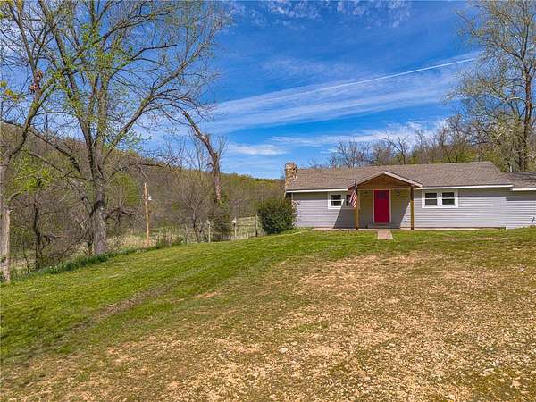 Enjoy the quiet of country living. This hilltop home is set on 12+ acres. Just 20 minutes from Siloam Springs, this 3-bed, 2-bath home in a peaceful setting offers space, privacy, and endless potential. The primary suite on the main floor offers comfort and convenience right past the entryway nook, while the spiral staircase adds a touch of charm as it leads to the downstairs bedrooms. A trey ceiling highlights the dining room, fireplace in the living room, and the back balcony becomes your daily escape-sunrise coffee, sunset unwinding, and everything in between. Outside, adventure awaits with 4-wheeler trails, wooded area to explore, and open spaces ready for whatever you imagine. The front porch is made for rocking chairs, seasonal decor, and slow mornings. With fiber optic internet and a 12x12 well house, this property blends rustic living with modern convenience. This is more than a home-it's a retreat, a lifestyle, and a chance to create the life you've been dreaming of.