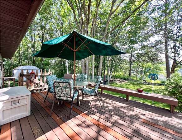 Nestled in privacy with tree surround and 440+ feet of frontage on Rice Lake this property offers lake views and and an abundance of wildlife to enjoy! Step inside to find an open concept kitchen with floating island and a living room with lake views and a walkout to the deck to enjoy peaceful serenity. The master suite offers a full bath, a large walk in closet, and balcony looking out toward the lake. The upper level also features another bedroom and full bathroom while the lower level invites you in to a cozy family room with gas fireplace and bar, while also offering an additional bedroom currently being used as an office, a half bath, and laundry/storage area. The 2 car attached garage offers extra storage along with a garden shed. Enjoy campfires by the lake and entertain guests easily with the large deck system perfect for summer barbeques. The property also offers an RV hookup and an additional wooded lot for added privacy. Don't miss your chance to own on Rice Lake!