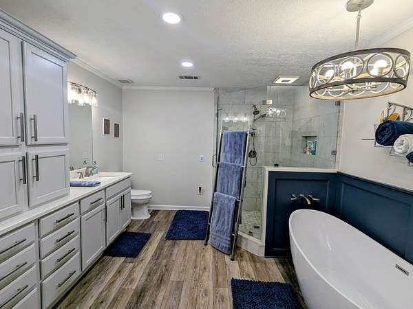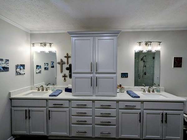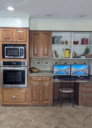 - Alarm System, Bookcases, Eat-In Kitchen, Kitchen Island, Separate Shower, Specialty Ceilings