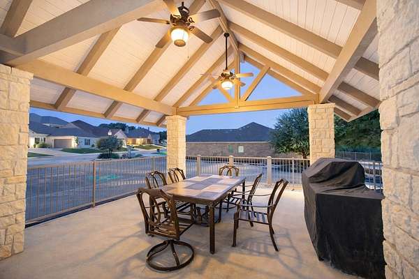 Premier Cul-de-Sac Lot! Rare opportunity to own one of the largest homesites currently available in The Meridian. Ideally situated on a quiet cul-de-sac with beautiful Hill Country views, this exceptional lot offers the perfect backdrop to build your dream home. A thoughtfully designed 1,800 sq ft floor plan is available, featuring 3 bedrooms 2 bathrooms, a dedicated office and oversized garage built to accommodate a full-size pickup plus an approximate 90 sq ft workshop ideal for hobbies, projects, or extra storage. The design also includes an open-concept living area & a spacious primary suite with a private ensuite ba. Located within a gated 55+ community (with limited 45+ eligibility), The Meridian is tailored for easy, low-maintenance living. Underground utilities preserve the natural beauty of the surroundings and included lawn care provides a true carefree lifestyle. Residents enjoy a welcoming clubhouse and pavilion, perfect for social gatherings and community events. Known for its strong sense of community and relaxed Hill Country charm, The Meridian is conveniently located near medical facilities, dining, and shopping.Call today to experience this exceptional homesite.