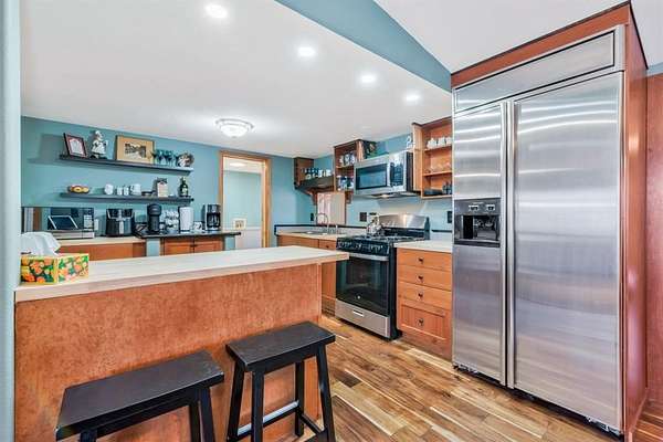The home has been thoughtfully updated with new cabinetry, countertops, appliances, carpet, paint, and canned lighting. Additional improvements include new bedroom light fixtures, curtains, a water softener, and a whole-home water filtration system. A wood-burning stove anchors the living space--ideal after long days outdoors.
