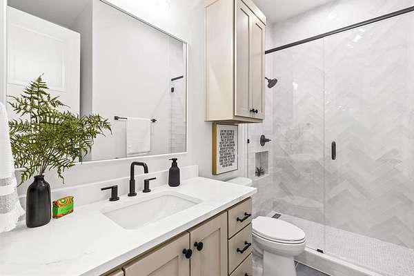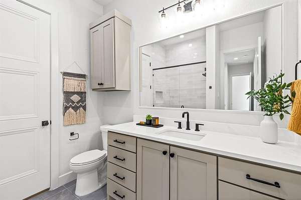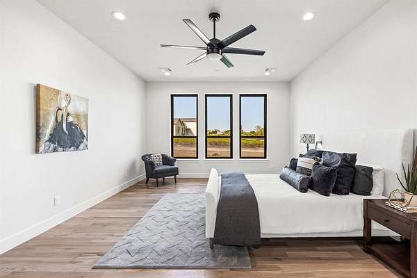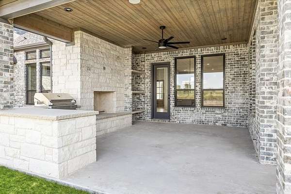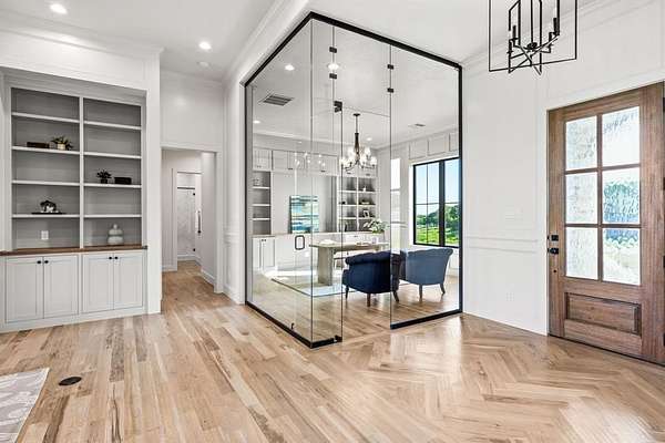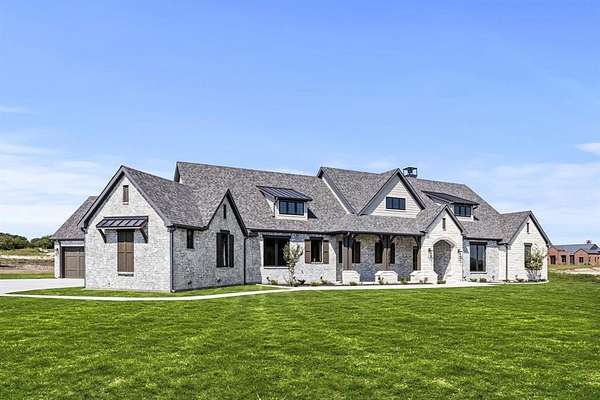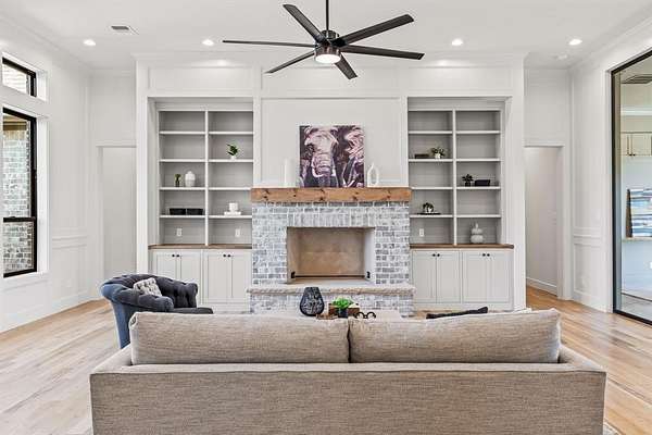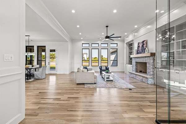 Built by Fourlight Custom Homes, this 4-bed, 4.5-bath residence blends artistry and comfort in every detail. From the moment you arrive, upgraded brick and stone, Hardie siding, and cedar porch ceilings set a welcoming, timeless tone. Inside, hand-scraped wood floors and soaring floor-to-ceiling Andersen windows pair with a high-efficiency Lennox system and spray-foam insulation to create a home that’s as energy-smart as it is beautiful. The grand living room, crowned with 12-foot ceilings and a wood-burning (gas-assist) fireplace, invites gatherings of every size. Sunlight pours through the windows and flows into the dining area and chef’s kitchen, where a Thermador built-in refrigerator and freezer, quartz countertops, soft-close cabinetry, and an expansive island inspire both quiet mornings and lively dinner parties. Behind it, a walk-in and butler’s pantry offer abundant countertop space and built-in cabinet storage galore, keeping everything organized and out of sight so the main kitchen stays pristine. A glass-walled study with custom built-ins provides a serene spot for work or reading, while a game room with dry bar and media space sets the stage for fun. Throughout the home, pre-wired sound and data drops mean you’re ready for today’s tech and tomorrow’s upgrades. The private primary suite is a true retreat, with spa-style bath featuring quartz counters, a steam shower with rain head and body sprays, a freestanding soaking tub, and a custom walk-in closet. Each secondary bedroom enjoys its own ensuite bath, ensuring comfort and privacy for family or guests. Step outside to a large covered patio with cedar ceilings, wood-burning (gas-assist) fireplace, and a built-in grill—perfect for year-round entertaining or quiet evenings under the stars. A water-softener system and three-car garage add everyday ease. Make this gem your new home today!
