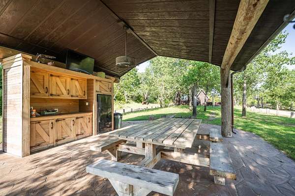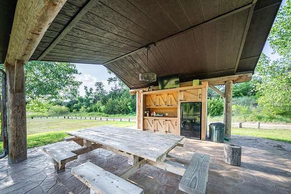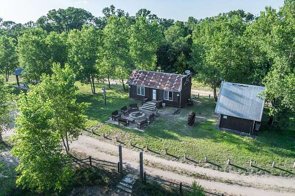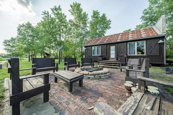 The cabin resides near the center of the 1 mile by 1 mile square section of land, away from any roads and except for an occasional train going by, the silence is only broken by the sound of the wind on the Kansas prairie. Of course, if you want it to get a bit more lively, you can always utilize the outdoor television or exterior sound system speakers to watch your favorite team, show or listen to your favorite music.