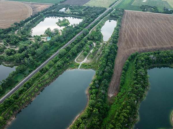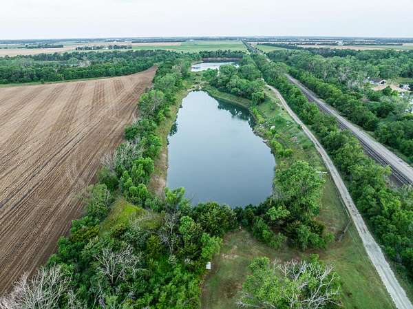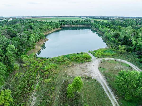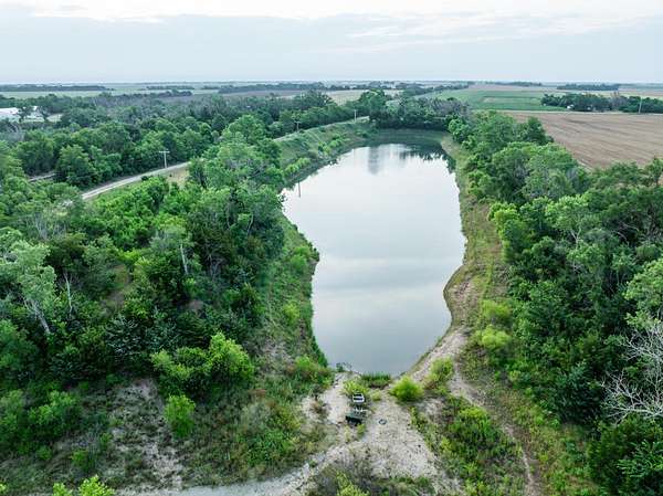Sitting upon a total of +/-24.14 acres, this property boasts a +/-9.75 acre lake that is surrounded by towering cottonwood trees, pines and cedars that provide both privacy and a wind block, making fishing and boating enjoyable more days per year. The lake is approximately 40 to 50 feet deep and is full of clear water, where you can see to depths unthinkable in most Kansas lakes or ponds. Depending upon rain fall and time of year, the lake may run together via a small channel on the south side or be separated into two distinct bodies of water.