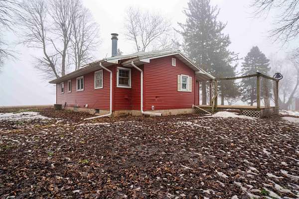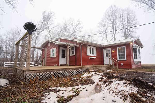 Ranch home situated on 3.51 acres M/L featuring 54 X 72 pole building with dirt floor and 840 sq ft detached garage. House has 2 bedrooms with full bath on main complemented with an open kitchen to a large family room and a 4-season room addition. The basement has 3/4 bath amenities, but is predominately unfinished with potential for a family room and possible future bedrooms with the addition of egress windows. The acreage has lots of open space and a hard-to-find timber area. Private well on property. House on rural water. With some cosmetic updates, this could be your dream acreage! Currently, zoned A1. Anticipate zoning change to RR when new deed is recorded.