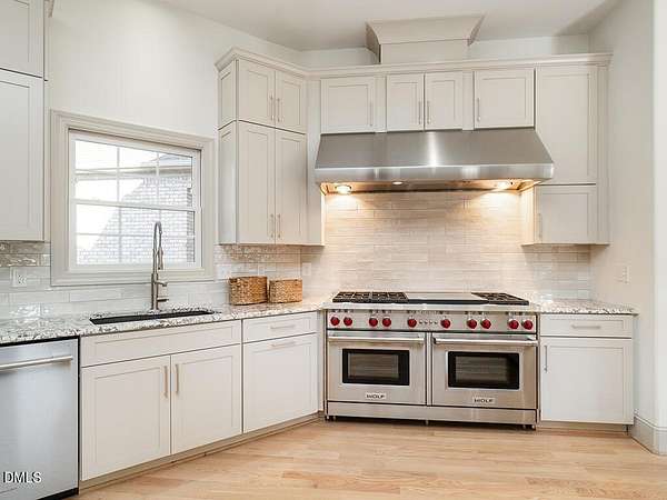 - Dishwasher, Double Oven, Gas Range, Microwave, Range Hood, Stainless Steel Appliance(s), Wine Refrigerator