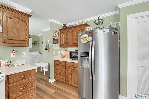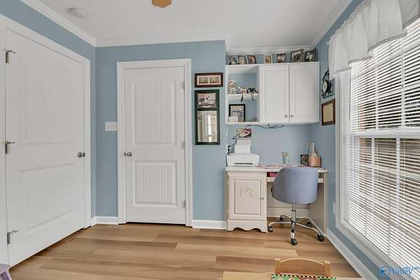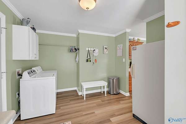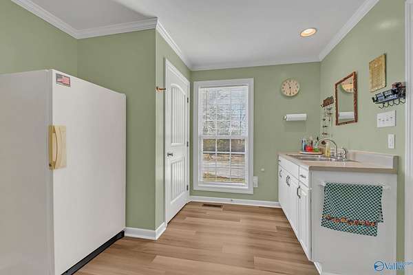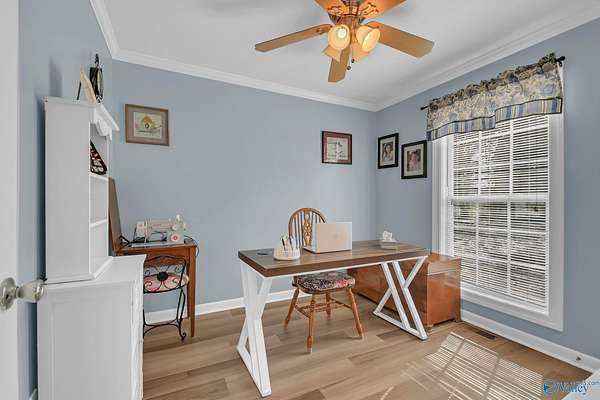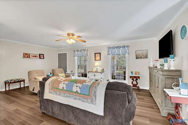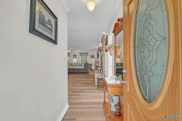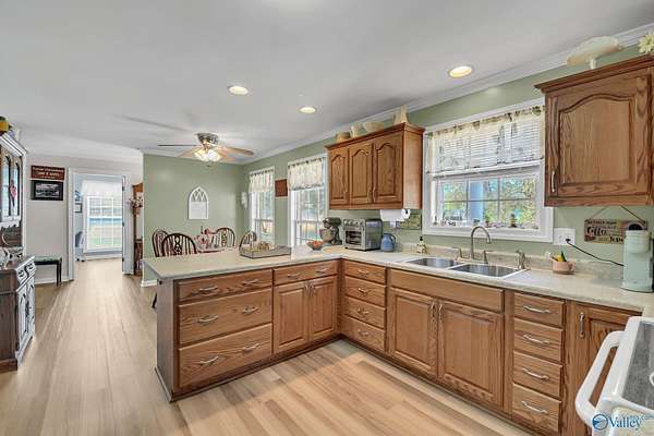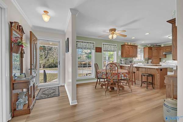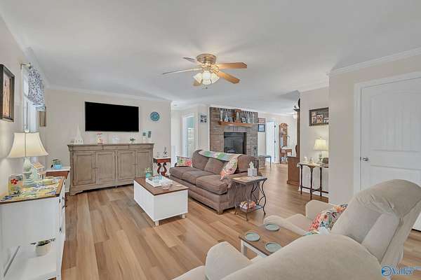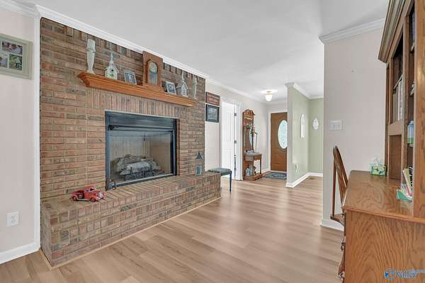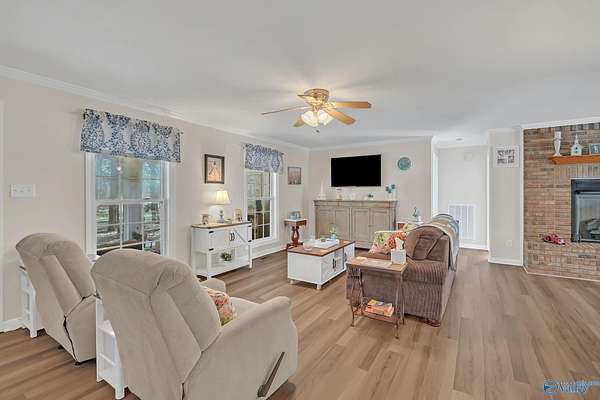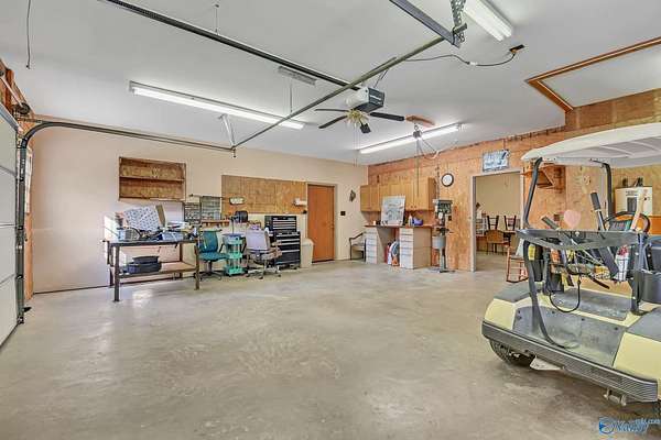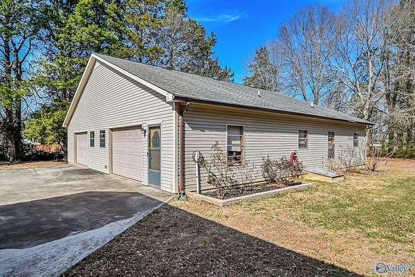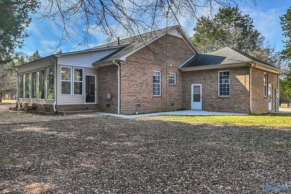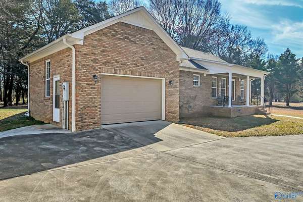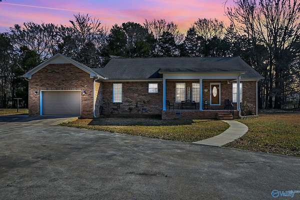 Built in 2008, this full brick 3 bed, 2 bath home offers approx. 1,928 sq ft on 3.5 private acres set off the road with a peaceful creek, yet conveniently located near I-565 and I-65. Enjoy a split floor plan, all bedrooms with walk-in closets, and a sunroom overlooking the water. The 2023 remodeled kitchen features new countertops, a large bar, and pantry, plus new flooring and paint through out in 2024. A cozy sitting area off the living room includes a large brick fireplace. The 2,500 sq ft shop/detached 4-door garage was built 2006, it has a insulated middle room with closet, & 3/4 Bath that was used as living space while home was being built.