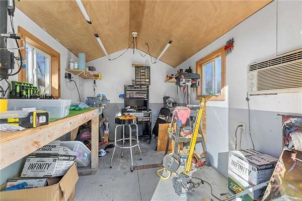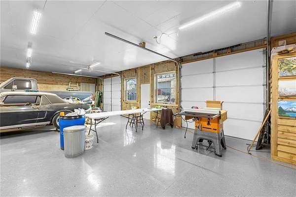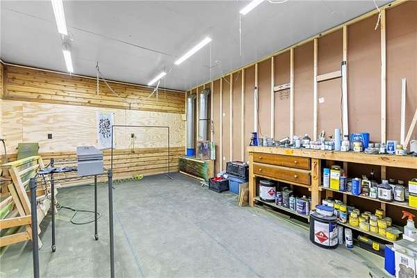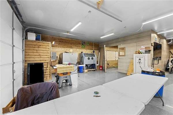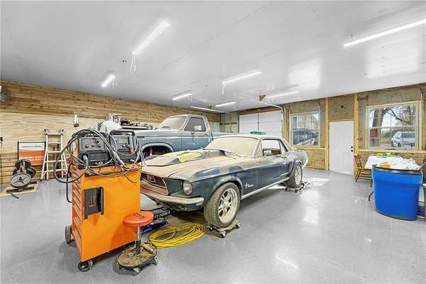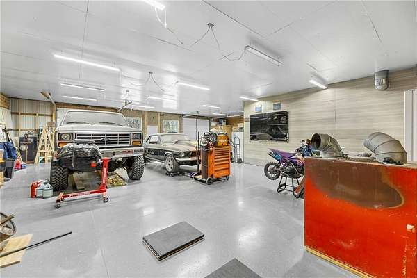 Welcome to a beautifully kept and nicely updated home sitting on 28.7 private acres of peaceful land. This property has the perfect mix of trees and open pasture, giving you space, privacy, and endless ways to use it. A charming covered front porch sets the tone before you even step inside. Most of the flooring, trim and interior doors are new, and the bathrooms have been remodeled with a clean, modern look. The primary suite is a true standout-extra spacious with a gorgeous glass-and-tile walk-in shower, double vanities, and an amazing walk-in closet packed with built-in drawers and cabinets. The kitchen features a gas range and white painted cabinets. There's a comfortable living area on the main level and another in the finished walkout basement, giving you plenty of room to spread out. The large laundry room with utility sink is a great bonus, and the unfinished space makes for excellent storage or even a home office, like it's used for now. Major systems are updated, including a very new water heater and an upgraded furnace feature-an auxiliary wood-burning boiler that keeps heating costs impressively low. Outside, the property really shines. You'll find several useful outbuildings, starting with the "He Sheda workshop with electricity and air conditioning. There's also an open-sided barn for equipment or vehicle storage, a smaller shed for wood, and an incredible ~50' x 53' shop. The shop has a newer concrete and epoxy floor, 200-amp service with multiple welding and air compressor hookups, new windows, roof, doors, insulation, and siding. It includes a wood-burning furnace and a spray booth with ventilation, which can be removed if you prefer more open space. The land also includes apple and peach trees, a garden area, and plenty of wildlife. With all the improvements, space, and flexibility, this property offers so many possibilities for work, hobbies, or just enjoying country living, and you're just a short 5 minute drive to town.