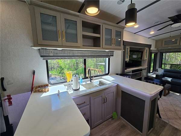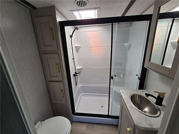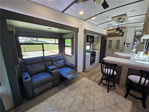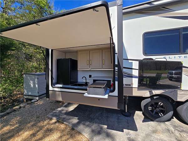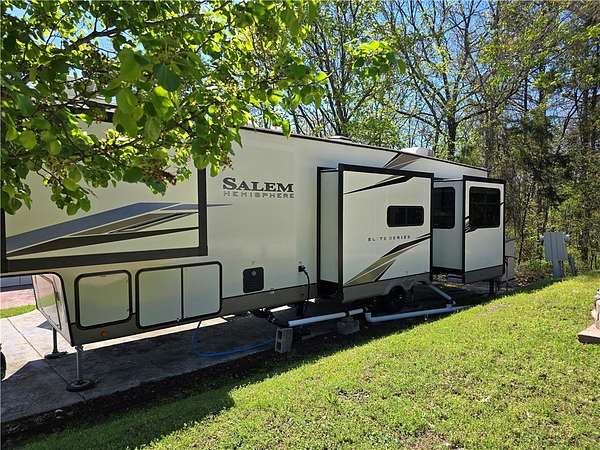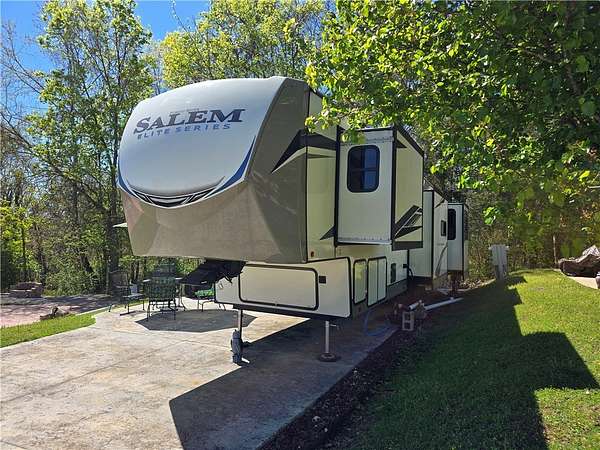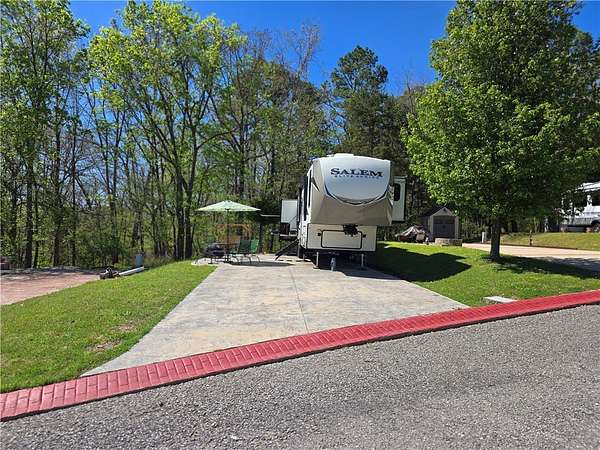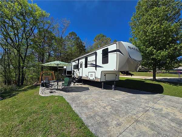 Experience luxury lake living in Cricket Creek RV Estates with this turnkey RV lot, sold with a 2024 Forest River Salem Hemisphere Elite packed with upgrades and a transferable Good Sam Extended Service Contract. This RV was purchased new, set up here, and has not moved! Enjoy an open-concept living area with fireplace, 55" TV, theater seating, and residential comfort. The king bedroom features a large lighted closet, and the bath offers a walk-in shower. A gourmet-style kitchen includes a 20-cu-ft refrigerator and ample storage. Outside, entertain with a full outdoor kitchen and 50" TV. The lot comes fully set up with outdoor furniture, fire pit, and storage shed for effortless enjoyment. Community amenities include a pristine pool, clubhouse, and sewer/water in HOA dues. Located near the entrance to Cricket Creek Marina with boat rentals, slips, launch, and swim area, and just 10 minutes to Big Cedar/Top of the Rock and 20 minutes to Branson. Simply arrive, relax, and enjoy your premium Table Rock Lake escape.