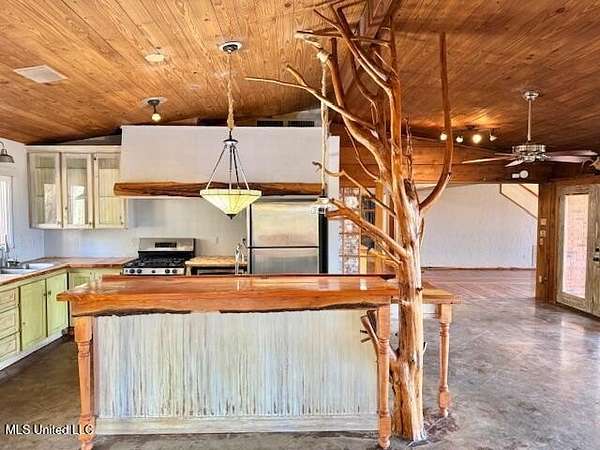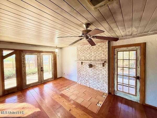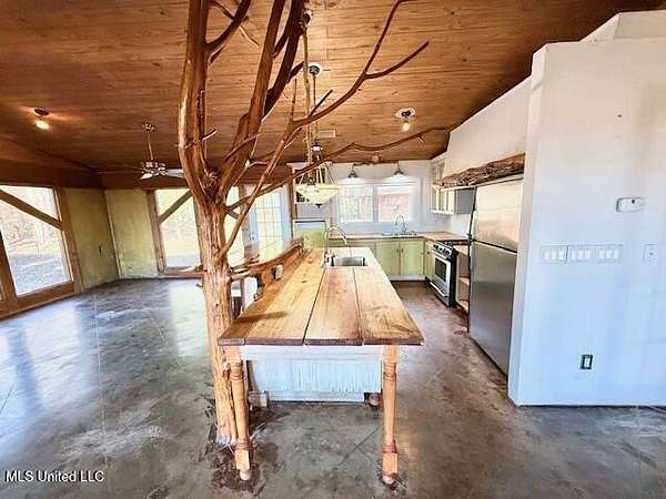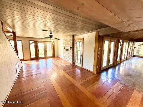 Welcome to your new private retreat! Set on 19.9+/- acres of gently rolling land, this 3,265+/- sq ft rustic artisan cabin offers a thoughtful blend of handcrafted design and recreational versatility. Built in 1987, the home reflects quality workmanship throughout, highlighted by hand-painted tile work featured across the home, stained concrete flooring, and hardwoods that add warmth and character. The property includes a pasture and hardwood mix with a pond at the front, creating an inviting natural setting with scenic views and a peaceful approach. A covered porch with French door access provides an ideal space to enjoy sunsets and quiet moments overlooking the land. Inside, the spacious great room features a striking stone fireplace and expansive picture windows that fill the home with natural light. The kitchen is both functional and inviting, offering a butcher block island and a walk-in pantry with sink, ideal for prep and storage. The kitchen flows directly to a wet bar equipped with an ice machine and wine cooler, making the home well-suited for hosting and everyday living. The primary bedroom and primary bathroom are located on the main level, along with an additional first-floor bathroom featuring a handicap-accessible shower, providing convenience and flexibility for guests or multi-generational living. A sunroom/solarium adds additional living space with views of the property. Upstairs, you'll find custom built-ins, flexible guest or hobby space, and a floored attic for additional storage. Exterior improvements include greenhouse and storage spaces and a she-shed/man cave, supporting a variety of recreational and lifestyle uses. With its combination of acreage, craftsmanship, and thoughtful layout, this property offers privacy, versatility, and a setting that can be enjoyed year-round-whether as a full-time residence, recreational retreat, hunting camp, or hobby farm.