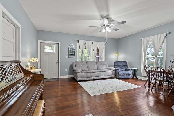 Welcome to 2007 Mudlick Road - the farmhouse you've been waiting for! Built in 1925 and beautifully remodeled, this home blends timeless character with modern updates, offering the perfect balance of old charm and everyday convenience. Sitting on 10 acres in Harrison County, the property is ideal for those dreaming of mini-farm living. Bring your animals, plant a garden, or simply enjoy the peaceful outdoor space complete with a large old dairy barn and storage building. Inside, the thoughtfully reconfigured floor plan creates a more functional flow for today's lifestyle. Step through the front door into a spacious, inviting living room that opens directly to the kitchen and a convenient half bath. The primary suite is located on the main level, featuring a large connected bathroom, walk-in closet, and flex space currently used as an office. Upstairs you'll find two additional bedrooms, a full bath, laundry room, and a second living area, providing plenty of space for family or guests. With its stylish remodel, modern comforts, and acreage full of potential, this farmhouse is ready for its next chapter.