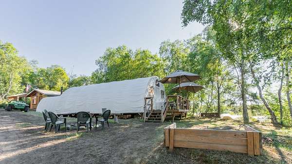 12 Riverfront acre Fish Camp Complex with multiple permanent structures, 22 all-weather guest cabins, boats, trailers, tractor and huge list of equipment (see documents)