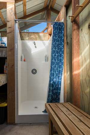 Permanent bathrooms? Yes, and it's a big deal in the Alaska wilderness! This permanent structure really helps set us apart from many of the other camps on the river. We keep the towel racks full and the bathrooms spic and span. There's nothing better than a nice shower after a day of hauling in Nushagak River Kings!