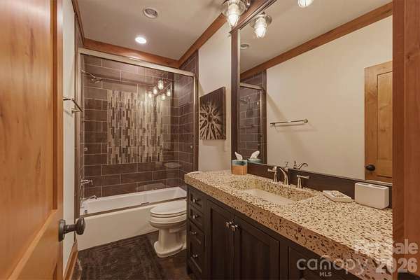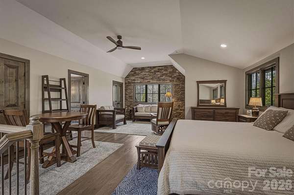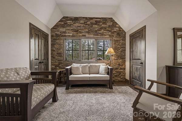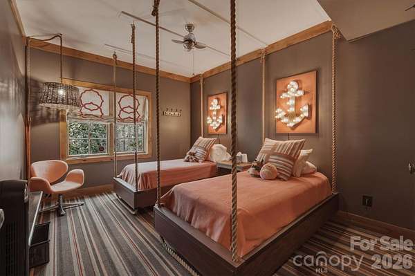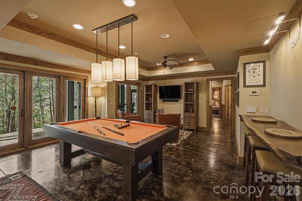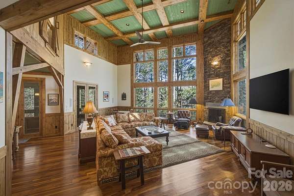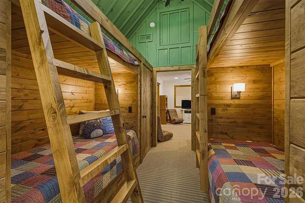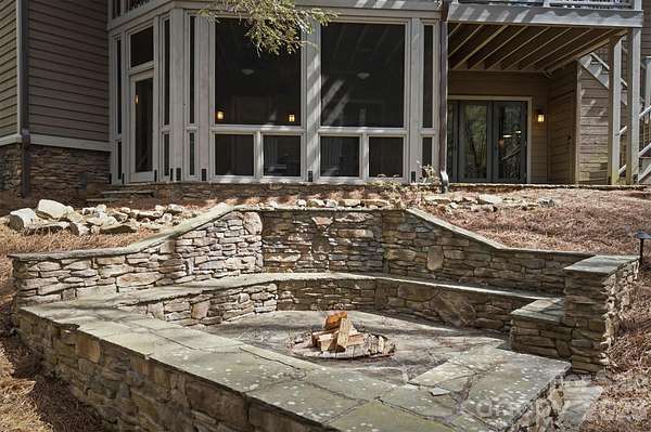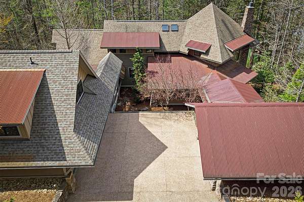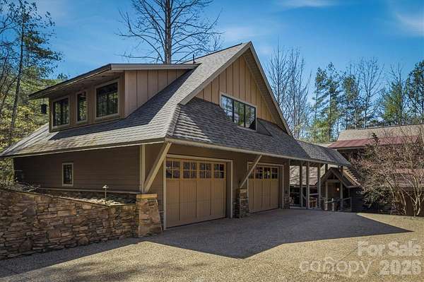 Discover an Old Wildlife Club sanctuary, perfectly positioned at the pinnacle point of Old Wildlife Club Dr. This meticulously architect-designed property offers a tranquil escape in a secluded cove, ideal for creating lasting memories. Enjoy effortless access to the esteemed Camp Lake James via a quick boat trip. Upon your arrival, you'll be welcomed by a grand porte-cochere and generous parking, conveniently located next to the beautifully updated carriage house. Step inside to be captivated by a magnificent 2-story great room, featuring floor-to-ceiling windows that frame the stunning natural surroundings, breathtaking water views, and the inviting dock. The main level boasts a luxurious primary bedroom with an ensuite bath, a gourmet kitchen, a spacious dining area, a relaxing screened porch, a perfect grill deck for outdoor entertaining, an additional bedroom with an en-suite bathroom, and a charming half bath for guests. Ascend to the upper level to find a versatile flex space, a delightful loft area equipped with comfortable bunk beds, and a well-appointed full bathroom. Skylights in the bunk area offer a unique, open connection to the grand great room below. The fully finished walk-out basement level provides even more living space, including two additional bedrooms, two full bathrooms, a practical laundry room, a fantastic bar/entertainment area complete with a pool table and a cozy lounge area, plus another serene screened porch. The recently completed carriage house, finished in 2021, presents a fantastic opportunity for an in-law suite or a separate, private flex space for the homeowner's enjoyment. Venture outdoors to explore the property's remarkable features, including a short, scenic walk across a charming footbridge to the dock. The property features a recreational platform, convenient kayak/canoe racks, and a floating dock complete with a boat lift, ensuring endless opportunities for lakeside leisure and cherished lakeside memories.