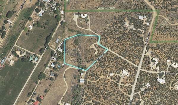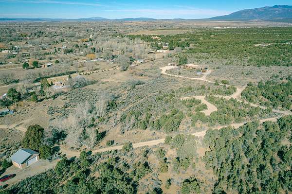 Come see this rare and gorgeous 4.6 acre property with a brand new well and water rights in the coveted Canon Foothills neighborhood. With majestic views of Taos Mountain to the north, spectacular sunsets to west and a spectrum of landscapes, this parcel feels peaceful and private. The mother Acequia runs across the property banked by tall trees and a riparian meadow speckled with wild flowers. It is in part forested by mature pinon and juniper trees, many are 15+ feet tall. Possessing both privacy and convenience, it sits just a few steps away from the Carson National Forest while 2.8 miles to the Historic Taos Plaza. Improvements include a driveway and meandering walking paths