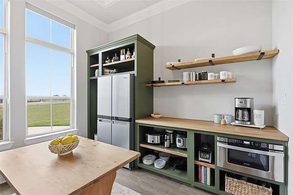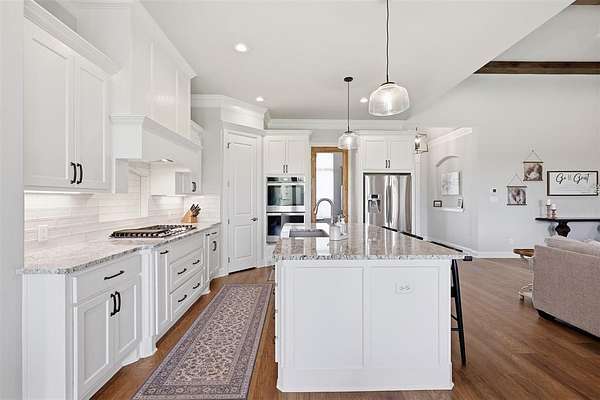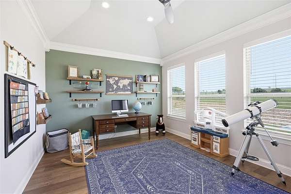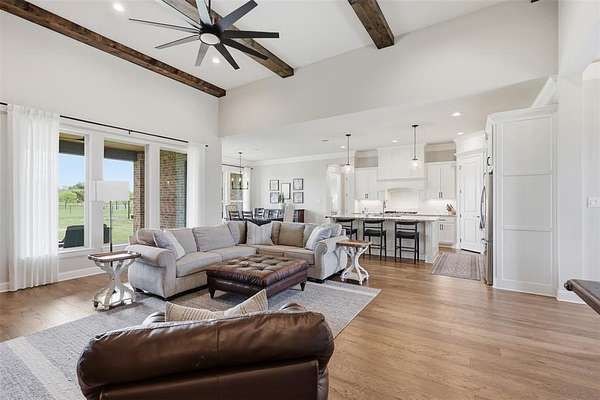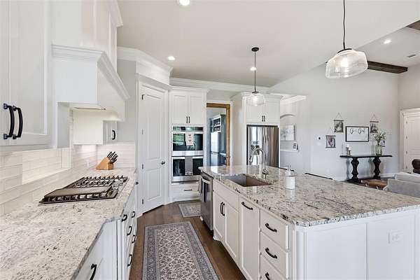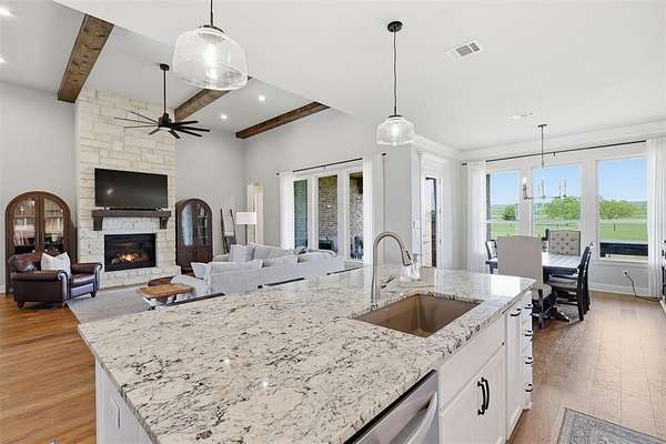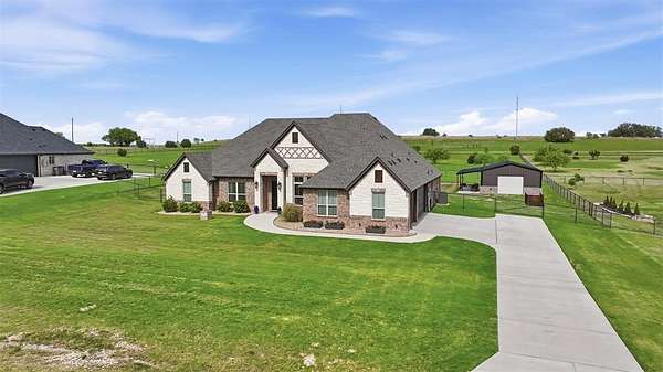 This thoughtfully designed 4-bedroom home offers flexibility for the way you live, featuring a spacious bonus room that can easily serve as a media room, second living area, home office, or playroom. The open-concept layout is warm and inviting, centered around a cozy gas fireplace and a well-appointed kitchen complete with a gas cooktop and a stunning butler’s pantry straight out of a magazine—perfect for hosting, prepping, and keeping everything organized behind the scenes. You’ll find an abundance of storage throughout the home, making it as practical as it is beautiful. Additional upgrades like a water softener system add comfort to daily living, while the built-in tornado shelter located inside the three-car garage provides an added layer of safety and peace of mind. Step outside and the property continues to impress. The 24x36 shop with a 10-foot lean-to porch is fully spray-foamed and equipped with heat and AC, making it ideal for hobbies, a workshop, gym space, or storing equipment and toys. The flat, usable acreage gives you room to expand, entertain, or simply enjoy the quiet surroundings and big Texas skies.