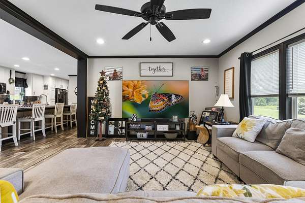 Welcome to this beautiful 2021 doublewide home on 4.8 acres just minutes from West Liberty, KY. This spacious 4-bedroom, 3-bathroom home offers over 2,000 sq ft of farmhouse-style charm, thoughtfully designed for both comfort and functionality. Inside, you'll find a huge kitchen perfect for cooking and entertaining, complete with a center island and a butler's pantry for extra prep and storage space. The open-concept layout includes a large living room and a cozy sitting area with an electric fireplace and wood-accented details that give the home a warm, rustic touch. The massive master suite is a true retreat, featuring a large walk-in closet, dual vanities, a relaxing jacuzzi tub, and plenty of space to unwind. Two of the secondary bedrooms are connected by a Jack and Jill bathroom-perfect for families or guests-while the fourth bedroom sits near the full bath for added convenience. Outside, the 4.8-acre property includes an older barn, ideal for storage, animals, or future projects. Whether you're looking for a mini-farm, a peaceful place to raise a family, or just extra space to enjoy the outdoors, this property has all the charm and room you need.