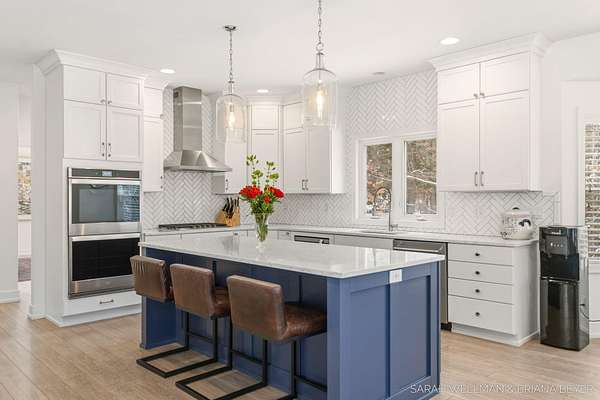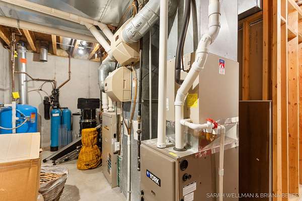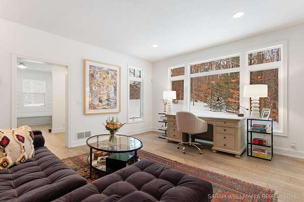 Nestled on 2.4 acres beside a 40-acre nature preserve and just moments from Tunnel Park, Holland State Park, Lake Michigan, marinas, bike paths, and walking trails, this updated home offers exceptional access to everything Holland has to offer. From the moment you step inside, the tasteful craftsmanship and quality of this welcoming home are immediately apparent. Flooded with natural light, the living room features beautiful transom windows lining the walls and a gas fireplace, creating an inviting space to gather. Overlooking the dining area and 3-seasons room, the kitchen serves as the heart of the home, complete with a sizable island, coffee bar, brand new stainless-steel double ovens, range, dishwasher, and a sink positioned to take in the natural backdrop. The sun-filled 3-seasons room is ideal for starting your morning with coffee, while the expansive deck invites you to linger into the evening, enjoying sunsets through the trees during twilight hour. Peaceful summer nights are best spent around the backyard firepit, overlooking Mallard Pond and surrounded by woods on all sides offering complete privacy. The main level is completed by a generously sized office with custom built-in display bookcases and a large picture window. The mudroom off the garage is both functional and thoughtfully designed, featuring hidden storage, open cubbies, and a large wraparound bench with storage drawers. The garage offers two entry points, providing easy access to both the kitchen and mudroom. Upstairs, all four bedrooms feature the luxury of their own ensuite bathrooms. The primary suite is a standout with vaulted ceilings, a cozy gas fireplace, beautifully finished bathroom with tile shower, a walk-in closet, and an adjacent cedar closet and laundry room. The walk-out lower level includes a spacious recreation area along with two additional bedrooms and two full bathrooms, offering incredible flexibility for guests, hobbies, or extended living needs. Storage is abundant in this home, featuring ample closet space, an unfinished storage area, and the convenience of a second laundry space. Additional features include a whole-house generator and a water treatment and filtration system. This home offers generous space for a large or growing household, yet also lives comfortably for those seeking a quiet retreat that expands effortlessly for holidays, vacations, or hosting loved ones. It's a rare opportunity to find over 4,500 finished square feet in such a premier location at this compelling price point. Tour this updated home to experience firsthand how thoughtfully it has been designed and impeccably maintained!