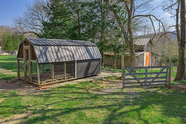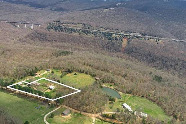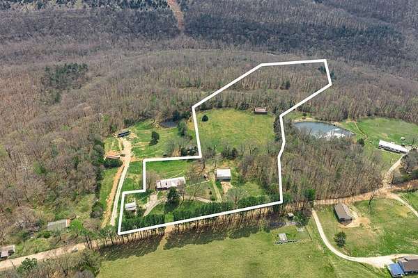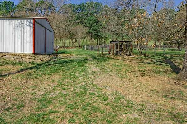 2.4 parklike level acres, with a view, and a huge workshop! 1-level, brick home (3BR/2BA) is freshly painted, (1690 +- s.f, with central heat/air & public water.) Interior has wood-burning fireplace with insert, built-in bookshelves, dining room with view and extra living area. Exterior has inviting covered front porch with rocking chairs, covered side deck, and a backyard stone patio with firepit. 2-car det. garage, hen house with metal roof, raised beds and, fenced garden area easily promote country living projects. Convenient circle driveway in front yard and native stone pillars line the road frontage creating an attractive front entrance. Located only 2.2 miles to I-49 -- a fast route to both University of Ar. in Fayetteville and Fort Smith, with nearby State Park and Ozark National Forest for recreation. Picturesque 12.7 acres with pasture and woodland are available for purchase.