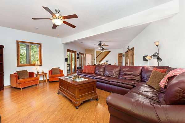 Beautifully maintained raised ranch setting above the end of a quiet lane, with seasonal views of Lake Eagleclaw in the sought after Hideaway Hills Private Resort community, this warm and inviting home offers comfort, privacy, and plenty of space to relax or entertain. Set on 1.5 acres with a long driveway right to the attached two car garage, inside you will find a spacious great room with a floor to ceiling stone fireplace creating the perfect gathering with family and friends, a Nest thermostat to control while away. Upper and lower walkout decks overlooking your peaceful tree lined property and seasonal lake views, walk right out to your hot tub and warm up by the fire pit for an outdoor oasis of entertaining year round. The main level features 2 bedroom/full bath ensuites and a separate half bath located off the great room for guests, the lower level walkout offers a cozy open family room, dining area, an additional bedroom, half bathroom and laundry area with storage. A whole house generator provides peace of mind in every season. In addition to 24 hour security, you can enjoy all the amenities available from Golf, a Fitness Center, Outdoor Amphitheater w/Summer Concerts, Swimming pool, Lodge and Clubhouse, Basketball, Pickle Ball, Lake of Four Seasons for boating, fishing and a beach area, 3 more non-motorized lakes for kayaking, paddle boarding and more! Enjoy all the charm Hideaway Hills offers as a private retreat with modern comforts in a truly special place.