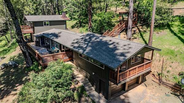 The Perfect Pairing of Land and Home - This one has it All!! The property includes 23 Acres of rolling, tree covered land with a Seasonal stream and Pond that flow through late Fall into Spring. This lovely ranch-style home has seen many updates over the past 7 years including a new Roof, Kitchen, bathroom, game room/3rd bedroom, interior flooring, paint and more. A large, cozy Living room with a rock fireplace featuring a woodstove insert and a true timber ceiling offers a Warm Retreat during the Cooler weather. The private master suite is located on the upper level and includes a Walk in Closet and en-suite Bath. Enjoy an abundance of Open decking-perfect for relaxing and taking in Nature at it's Best. Additional features include an attached garage plus a large, detached 30 x 50 Shop. An ideal set up for those who are Handy. For outdoors enthusiasts, the property offers numerous hiking trails, native evergreens, seasonal flowering Trees and plants along with a dedicated area for growing your own Vegetables and fruit. An outdoor kitchen makes cleaning and prepping your harvest more enjoyable . To top it off, the property is on metered county water and has fire hydrants nearby, which can help secure more affordable fire Insurance.