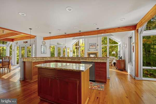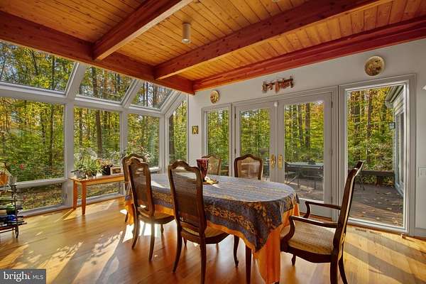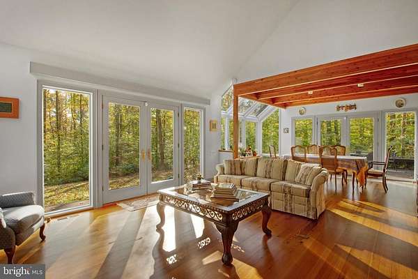 Offer Deadline, Monday, Nov 3rd at noon. Stunning, light-filled post and beam home with 1st floor primary suite! Set on a completely private 9.8-acre lot, this home is nestled among the trees with an open lawn perfect for a garden. Located in a quiet 10-home subdivision that was once a 100-acre farm, the property offers the best of both seclusion and community. Inside, you'll find soaring ceilings, skylights, pine hardwood floors, and expansive windows that bring the beauty of nature indoors. Enjoy peaceful mornings or evenings on the back deck, paver patio, or wraparound porch, ideal for quiet moments or entertaining family and friends. The gourmet kitchen features a Viking gas stove with two ovens, stainless hood, and center island. The main-level primary suite includes a cozy fireplace, 2 walk in closets and the primary bathroom, renovated in 2022, blends comfort and modern style. Second floor features three large bedrooms with large lighted closets, two sitting areas and bathroom with shower/tub and sliding glass doors. The walkout basement is fully finished with a large recreation room, office, and workshop, providing flexible space for work and play. An oversized detached two-car garage (24' x 25'), built in 2014, offers space for cars plus excellent storage. The roof was replaced in 2019 and comes with a transferable warranty. Home has a generator. Ideally located in Lothian, Maryland, this home offers a peaceful country setting with convenience-just 45 minutes to Washington, D.C., 30 minutes to Annapolis, and close to international airports. Within minutes are waterfront restaurants and marinas in Deale and Galesville, horse stables & several popular golf courses. Experience privacy, craftsmanship, and natural beauty, all in one remarkable property.