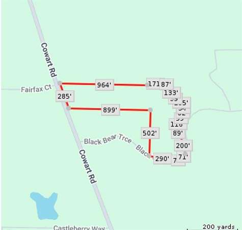 GPS 1777 Cowart Rd and turn down Black Bear Trace. Continue past gate and property is on the LEFT, just before the creek