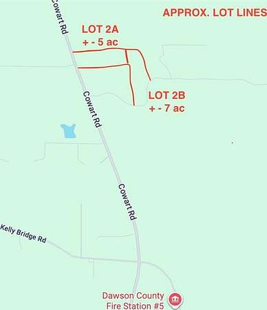 DAWSON COUNTY ACREAGE 6+ ACRE LOT. Ready to make THE MOVE you've been waiting for? Privacy abounds with this easily accessible lot in area of multiple acreage executive homes. Property runs creekside! Bring your builder and create the DREAM. "In the country" setting on private road. Experience nearby Crystal Falls Lake and Golf Course, Gibbs Gardens, Big Canoe, Atlanta Motorsports Park, North Georgia Premium Outlets, Edge of the World Trail, Holley Falls, Dawson Forest, Dawson County Parks and more. Dawson County Fire Station 5 close by. Additional 5+- ACRES available. Buy both lots 2A and 2B and have access from two roads for unlimited possibilities. Nearly "off grid" capable! Currently zoned agricultural and ready for your new residence.