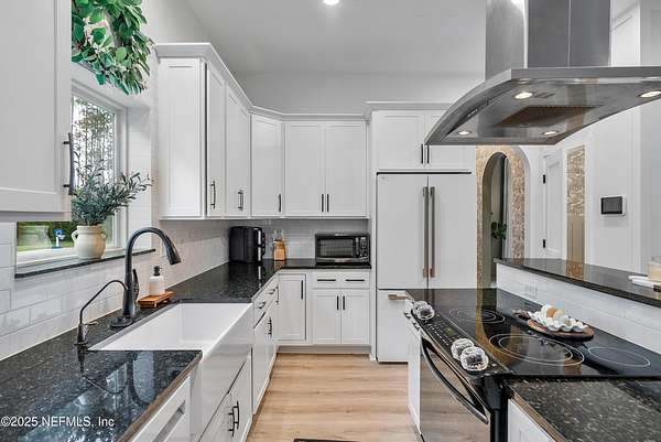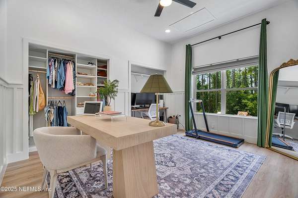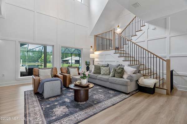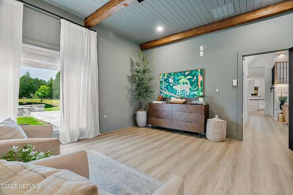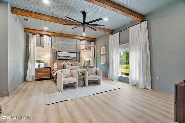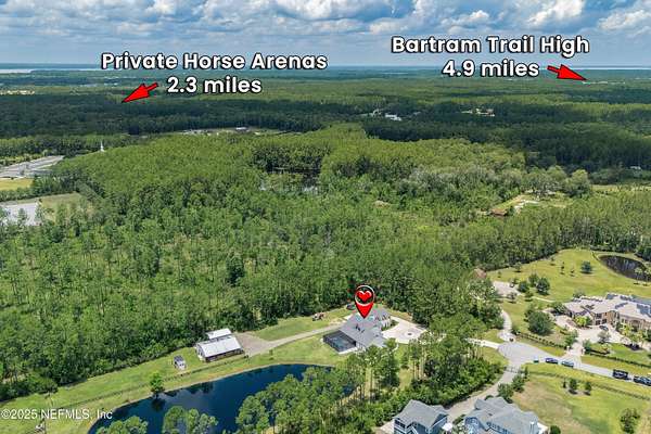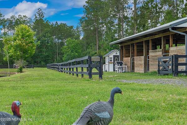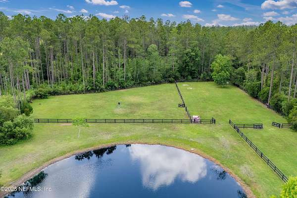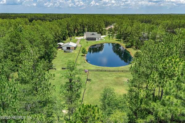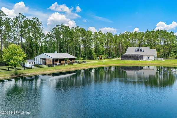 Indulge in effortless luxury living at this picturesque estate-timelessly renovated with stately finishes, perfectly positioned on 5 private acres, and located within the prestigious Equestrian Way at Whitelock Farms, this residence offers a refined blend of both equestrian convenience and sophisticated farmhouse living. The grand exterior of the estate welcomes you with its private gated entry on a quiet cul-de-sac street, framing the vast backdrop of the manicured lawn and pastures. The primary residence has been intentionally and expertly renovated, with extensive upgrades and meticulous attention to detail. Stepping inside, you're greeted by grand vaulted ceilings, newly installed luxury vinyl flooring, and an elevated farmhouse chic styled interior that could easily be featured in a design magazine! The primary living space is the true heart of the home, with a focal point fireplace and welcoming ambiance. Flowing past the living space, you enter the traditional kitchen and breakfast nook, featuring modern appliances and ample space, separate from the formal dining room, perfect for any gathering. The downstairs primary is masterfully designed, featuring ship lapped and beamed ceilings, along with wood-framed accent walls, adding warmth and character to the space. Past the lavish custom his-and-hers closets is the sophisticated adjacent en-suite complete with dual vanities and separate free standing tub and shower. Step outside and imagine the coming summer days spent relaxing by your heated screened in saltwater pool overlooking your 5 private acres. Enjoy the serene backdrop of your stocked pond, pastures, and future equine companions peacefully grazing. Your private, owned, security system offers peace of mind for all. The convenient 4-stall barn features matted stalls, a wide center aisle, separate spacious air-controlled tack and feed rooms, and easy access to the 3 large pastures. The front of the property has potential for additional pastures should more space be desired. Adjacent to the barn is the carport for covered boat/RVparking. Whitelock farms boasts multiple dedicated equestrian community spaces, with both grass fields (with jumps), fenced arenas, dressage arena, and bridle trails-with footing regularly dragged, and trails maintained. There are both bridle trails and the option to trailer to the many multi-discipline arenas. Upstairs you'll find the additional four well-sized bedrooms, including multi-generational capability with a full bedroom, currently used as a second living space, and en-suite with separate access from the garage. Two of the four rooms are Jack-and Jill style, and the final room would make either a great bedroom, home office, playroom, or gym! This luxurious 5-acre equestrian estate offers more than just a home; it's a way of life. This property is the perfect blend of elevated luxury, equestrian convenience, and unbeatable location with top rated schools, fine dining, and lifestyle boutiques just a short distance away. Schedule your private showing today.