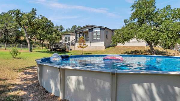 Your 1.66 Acre property 1 block from Lake LBJ boat launch waits you. This property is set up as a commercial, residential layout. Main House is a Manufactured home built in 2022, 2720 Sq ft with 4 bedrooms, 3 baths that includes two en-suites. Front yard is rolling yard with above ground pool. Dog run. Home has beautiful features with out and separate dining room, laundry room, Large open kitchen with eat at island, Front porch is inviting as you relax. 2nd home on property, is a , 1100 sq ft bedroom/1bath. with spray in insulation, mini splits, Well is running off the house. There is a workshop 450 sq ft, insulated and HVAC. Red Iron Shop 1500 sq ft with concrete flooring, dry fitted for bathroom, insulated, lights 2- 12 ft roll up doors, Front of property is Commercial building that is 2400 sq ft fronting 1431 with fenced in yard and two lots to the left. Drains placed in the flooring. This property has a lot to offer!