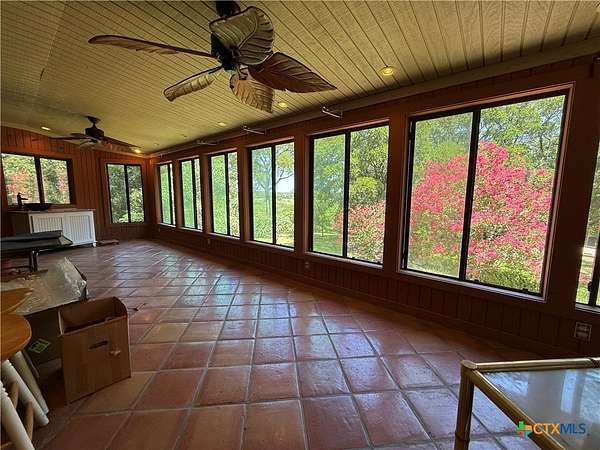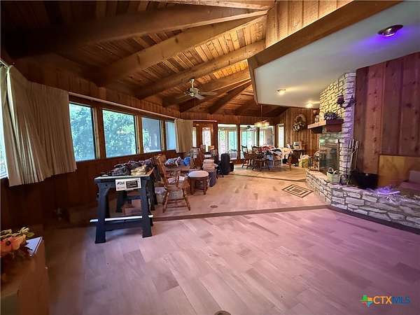 Nestled beneath a canopy of trees with sweeping 30+ mile hilltop views, this custom-designed and custom-built 1975 country estate captures the essence of peaceful Texas living. The style is country lodge and very relaxing. Situated on 2.66 acres on the edge of Gatesville in Coryell County Tx, the home offers both privacy and convenience-just 45 minutes to Waco, 1.5 hours to Austin, and only 30 minutes from Temple. The two-level residence features 4 bedrooms, 3.5 baths, a dedicated study, two living rooms, a sun/plant room, a third level crows nest observation room, two dining areas, a breakfast room, and two full kitchens. Designed with versatility in mind, the layout allows the home to function seamlessly as one spacious estate or as two independent living spaces-an upstairs and a downstairs residence-perfect for multi-generational living. A detached two-car garage completes the property, making this estate a rare combination of charm, functionality, and breathtaking natural beauty.