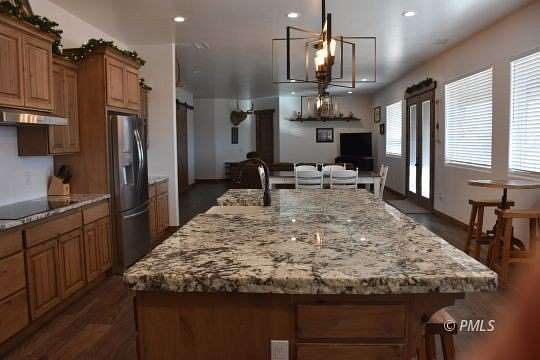 This property is absolutely gorgeous. Rebuilt from the foundation up in 2019, this home has all of the amenities, perks, and upgrades you can ask for. This spacious home offers a variety of features and with an open concept throughout you can visit and cook while entertaining family and guests. This home has 3 large bedrooms and a den/office with beautiful custom made barn wood doors (this space can easily be turned into a fun room or play room as well). The wood tile flooring is stunning and compliments the knotty alder wood cabinetry and granite counter tops. The kitchen features a deep farmhouse sink and very beautiful island that faces the back to see out the spacious windows. The covered porches in front and back are custom made with a burnt wood look and a cabin feel. Sitting on a 2.98 acre lot is a spacious 3,000 sq ft shop with 3 garage bays for boat or RV storage or whatever you'd like. The shop has roughed in plumbing for potential 2 bedroom apartment.(unfinished) (10 ft ceilings, jacuzzi tub in master bath and double shower heads in shower) Owner/Agent and Owner is a licensed real estate agent in the state of Arizona.