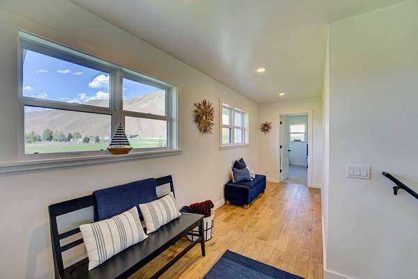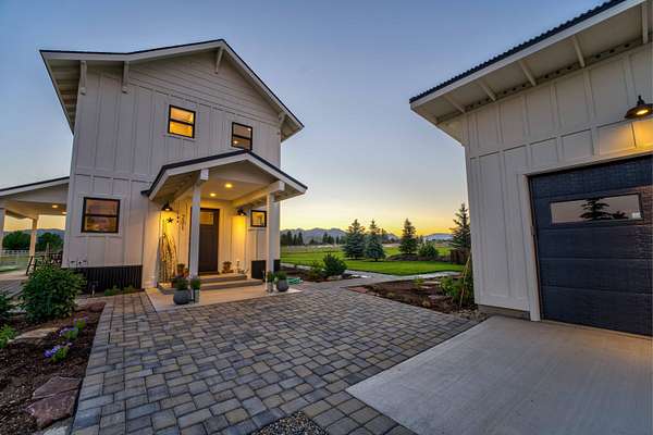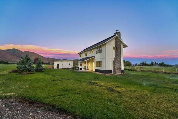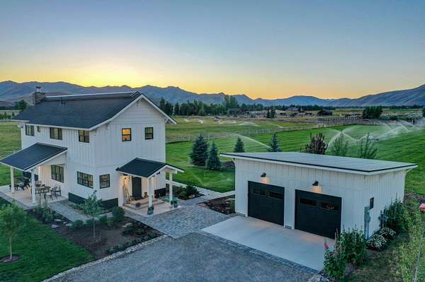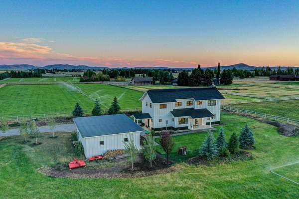 Set on 5+ acres in Bellevue Farms with big, open views in every direction, this contemporary farmhouse is filled with natural light. The cook's kitchen features stainless steel Fisher & Paykel appliances, a center island with seating for two, and a generous walk-in pantry. High ceilings, cozy nooks, and a wood-burning fireplace make it feel welcoming year-round. Outside, you'll find a large detached garage with 8-foot doors, hay production that helps offset property taxes, and shared 1883 water rights. Located on the Polo Fields, it's the perfect blend of country charm and modern comforta little bit of Little House on the Prairie with all the upgrades.