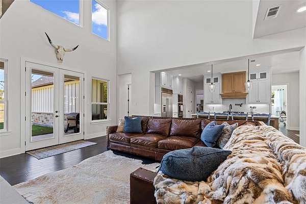 Peaster ISD -- Motivated seller! Nestled in the gated Hidden Springs Ranch, this custom 4-bedroom, 4-bath home is designed for gracious entertaining and country living with deluxe, horse-friendly amenities.