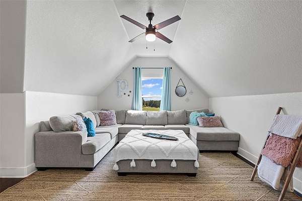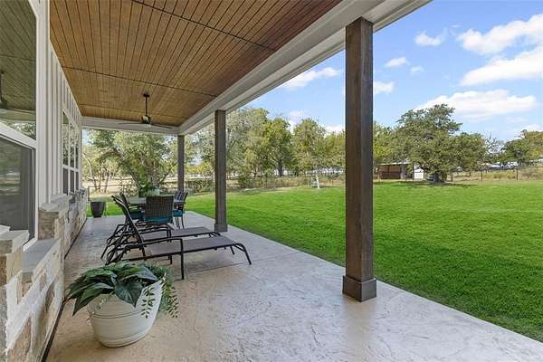 A long, private drive leads to generous curb appeal and multiple outdoor living areas. The front patio invites morning coffee while the expansive stamped-concrete back patio is perfect for evening gatherings. The property includes a loafing shed with pipe fencing -- ideal for horses -- and a private side of the pond stocked with largemouth bass and bluegill. White-tailed deer are frequent visitors, adding to the serene, rural ambiance.
